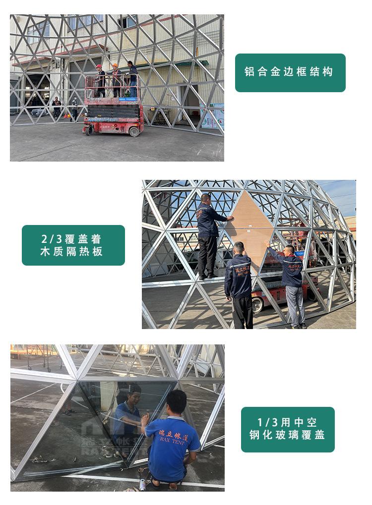 Las cúpulas de cristal de madera de gran tamaño se utilizan principalmente en cines y restaurantes de campings.