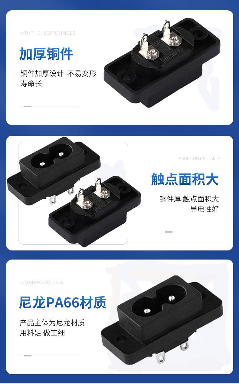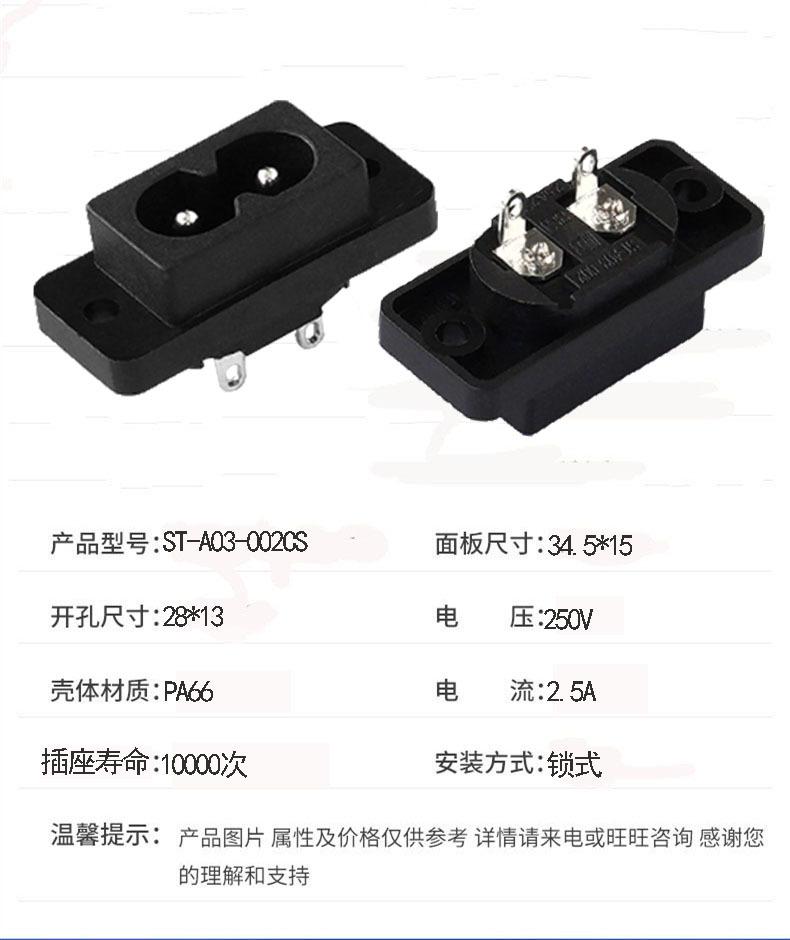 Toma de corriente C8 con calibre de seguridad Yangqi ST-A03-002CS Toma de corriente con forma de ocho Enchufe PA66 ignífugo de 8 palabras