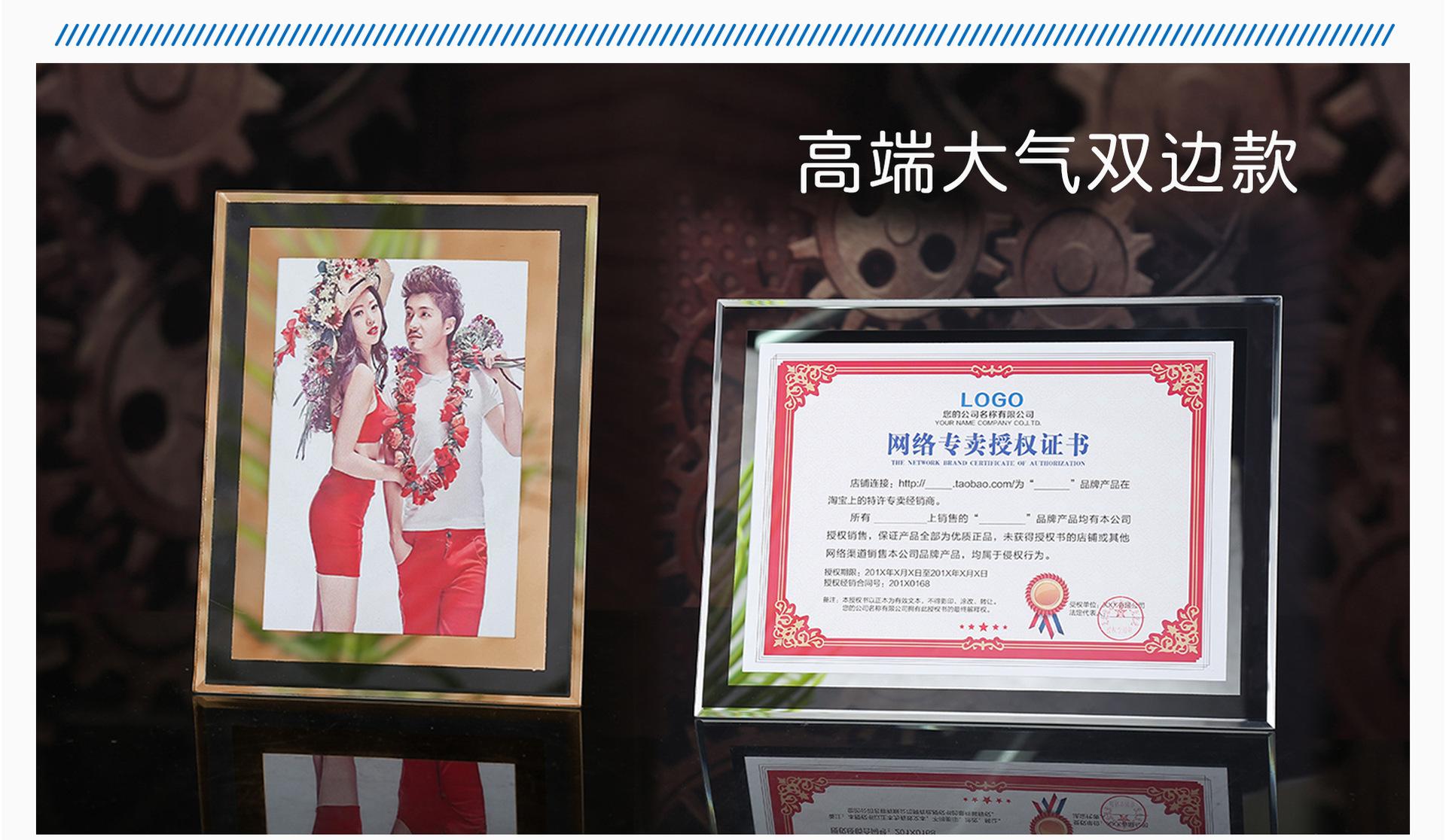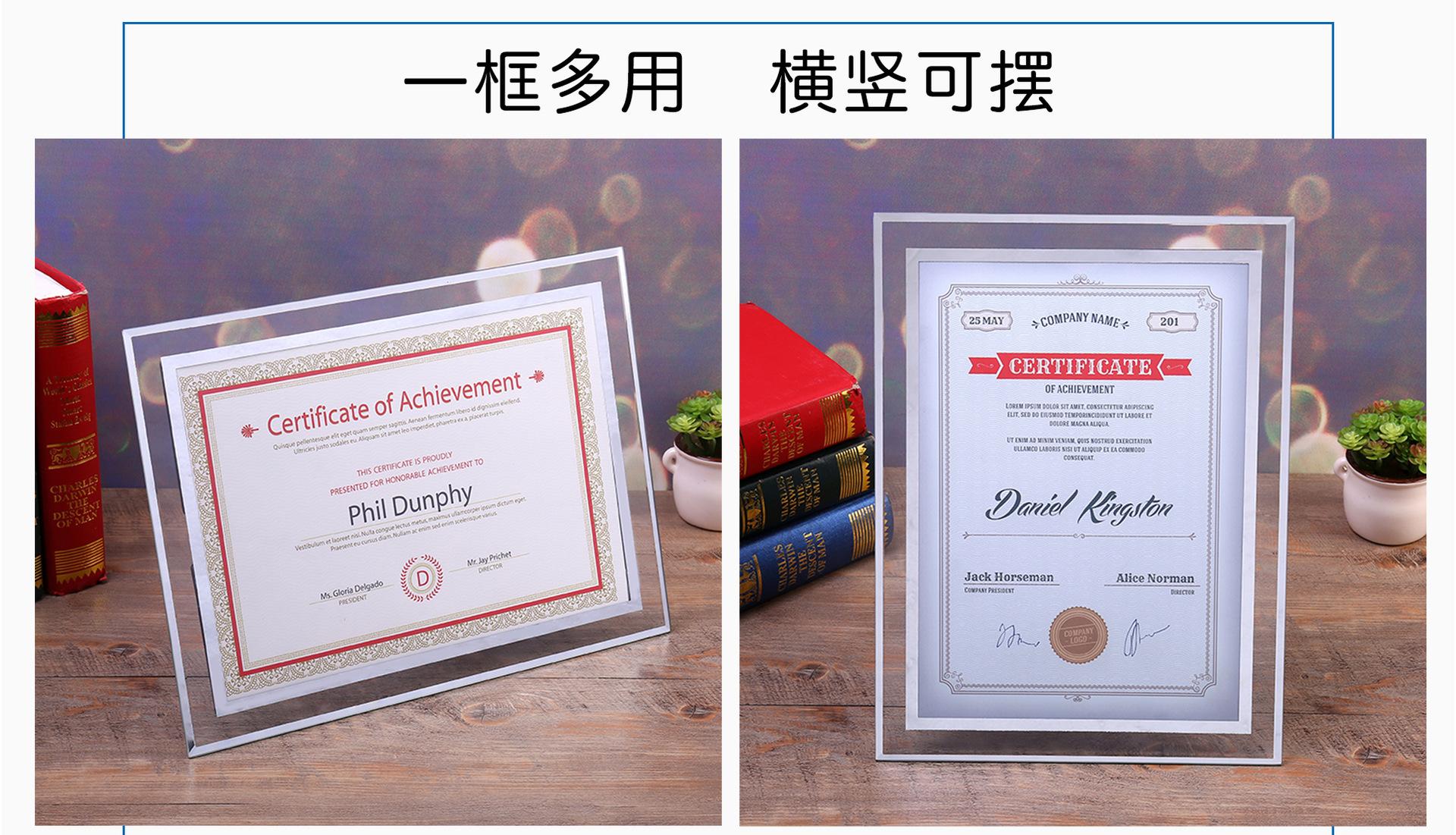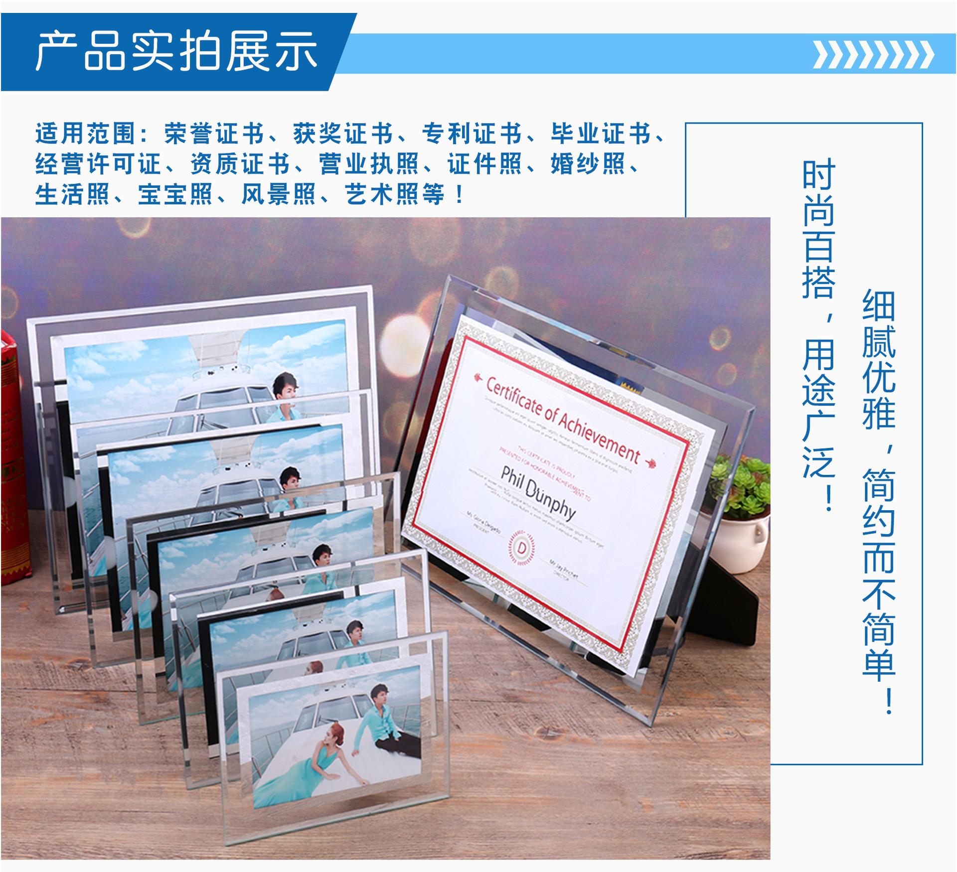 Marco de fotos de cristal de vidrio personalizado, mesa creativa, marco de fotos de doble cara, marco de certificado de estilo simple, marco de certificado