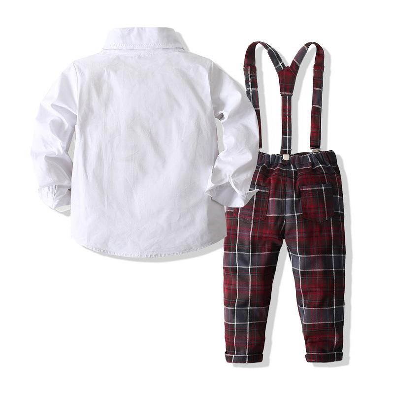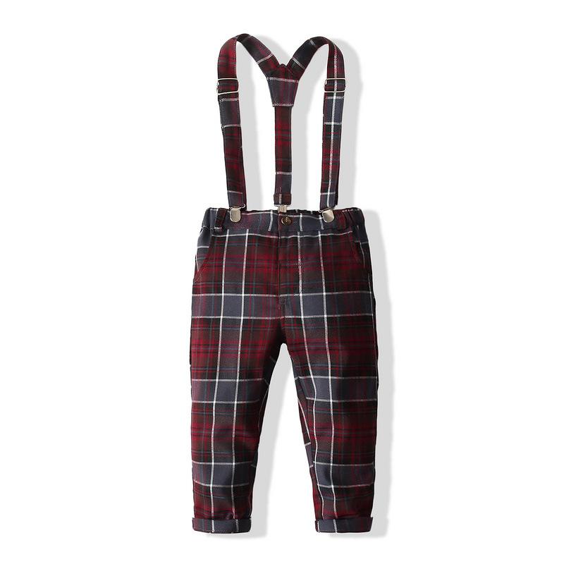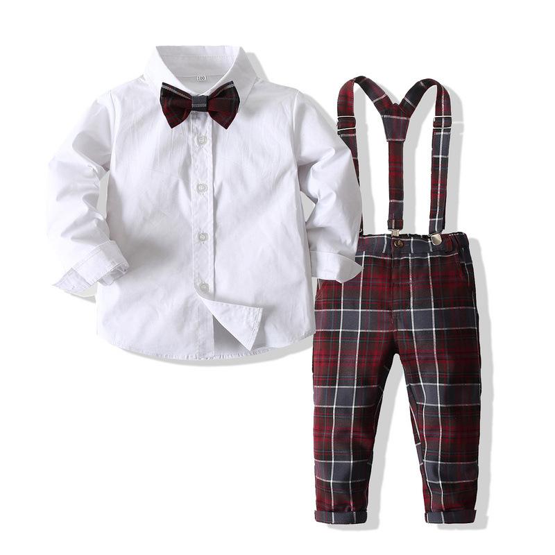 Traje de caballero para niño, primavera 2021, nuevo traje de tres piezas con camisa de manga larga y chaleco a cuadros para niño transfronterizo