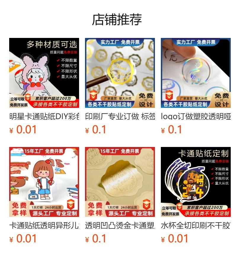 Etiquetas autoadhesivas publicitarias de dibujos animados, impresión de sellado, personalización de pegatinas en lotes pequeños, personalización de etiquetas autoadhesivas con logotipo