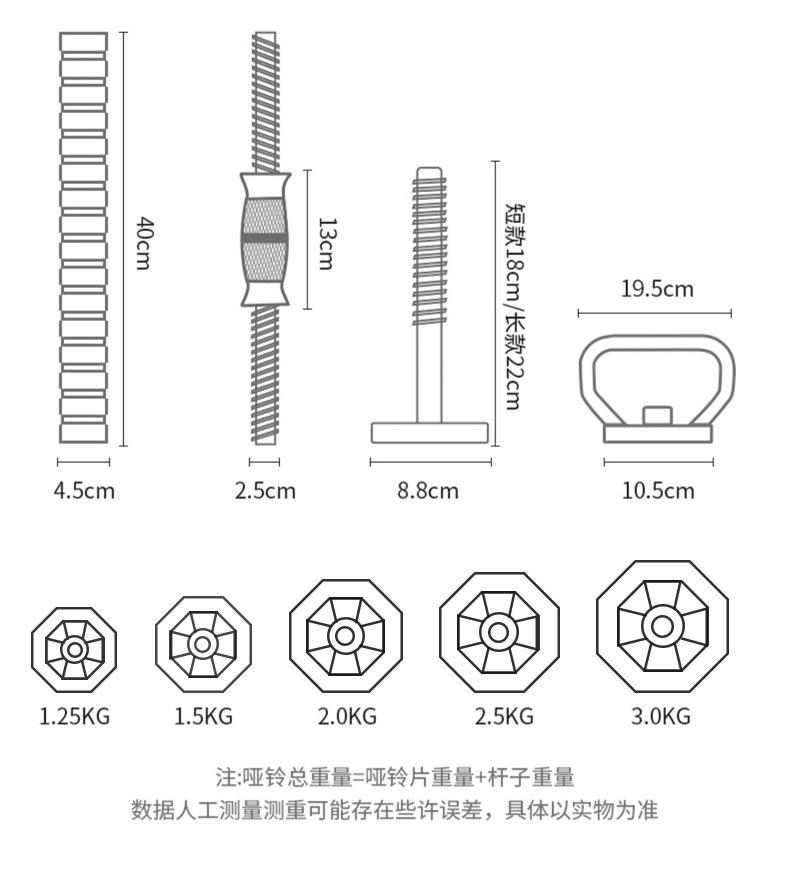Conjunto de ejercicios con mancuernas octogonales para hombres y mujeres, equipo de fitness para el hogar, combinación de pesas rusas y barra de goma ajustable.