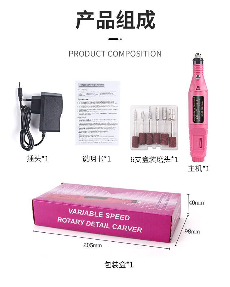 Mini lijadora de uñas eléctrica con bolígrafo, lijadora de uñas portátil con puerto USB, removedor de uñas