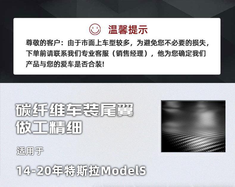 Aplicable a 14-20 Tesla Tesla cola de fibra de carbono seco modificada Tesla Model S alerón