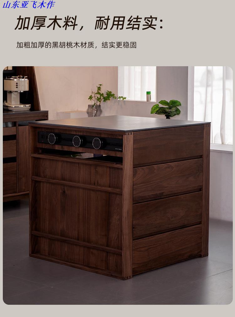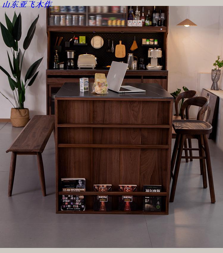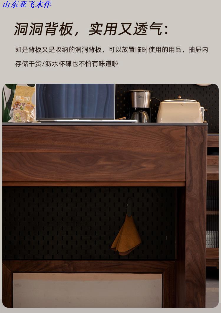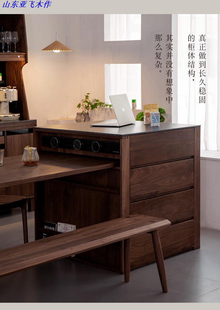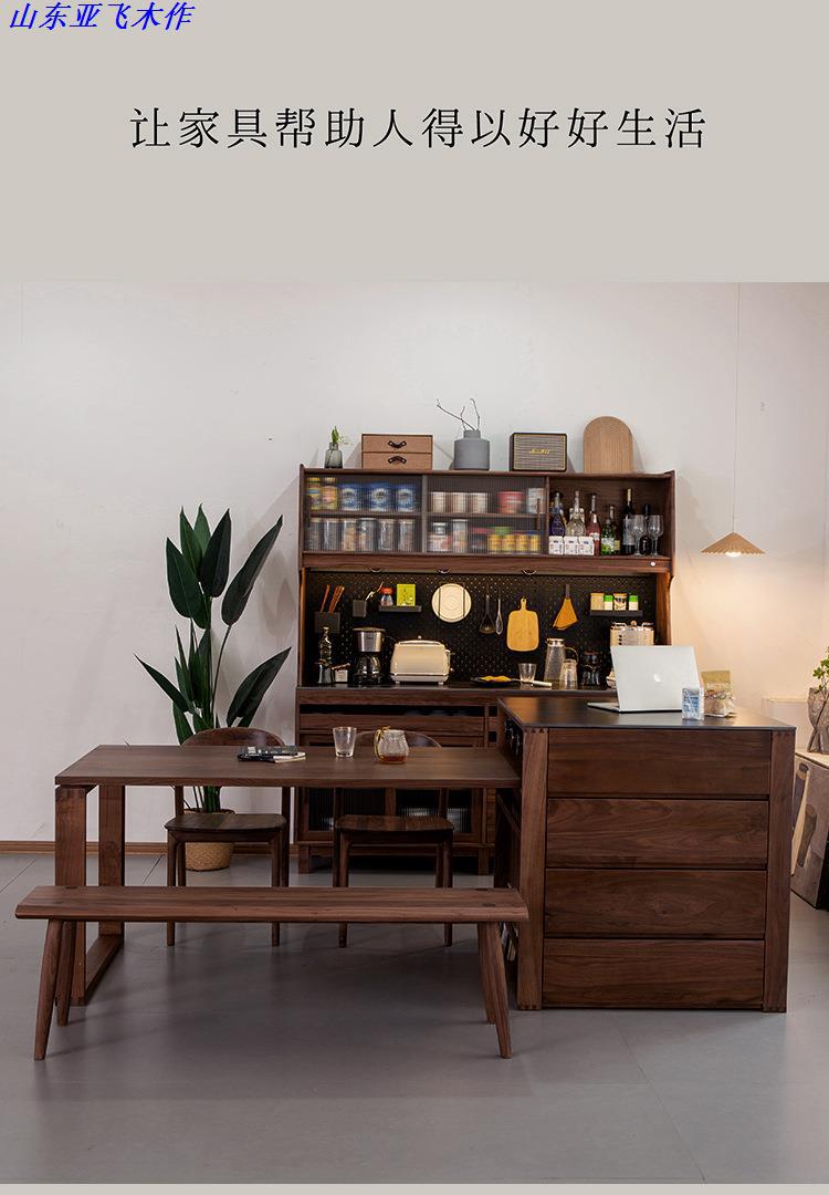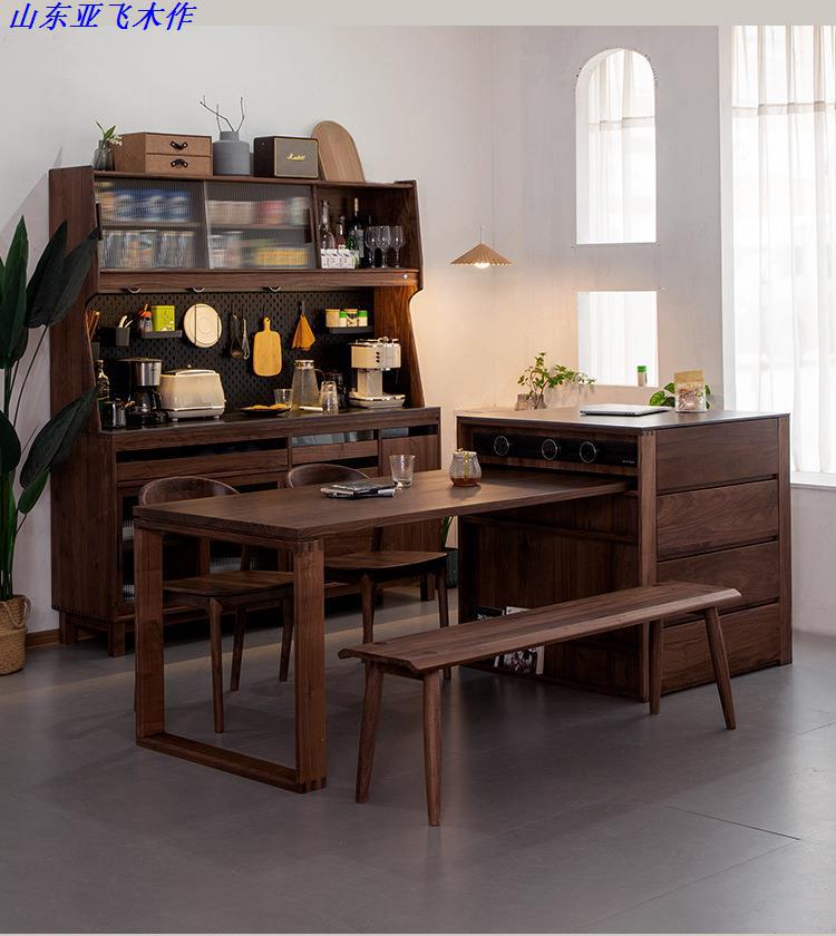 Aparador de madera maciza de nogal negro, moderno mueble de pared integrado para té, mueble de vino para sala de estar, mueble de almacenamiento para cocina