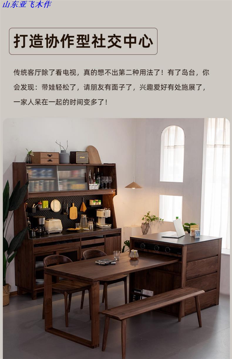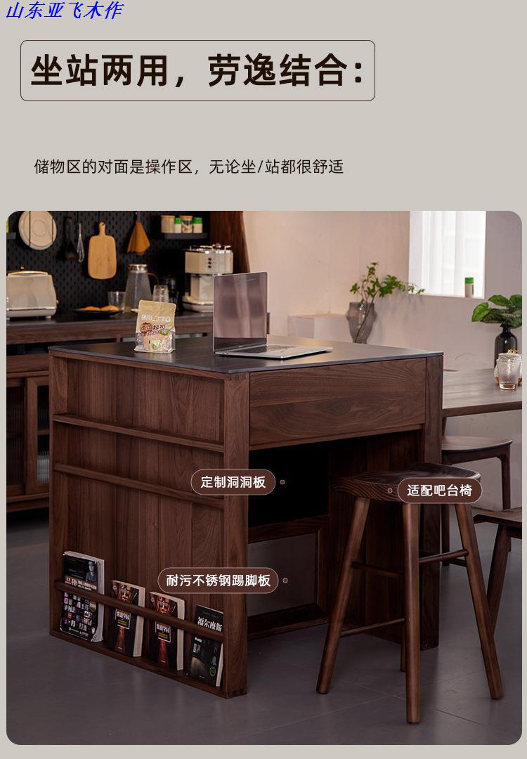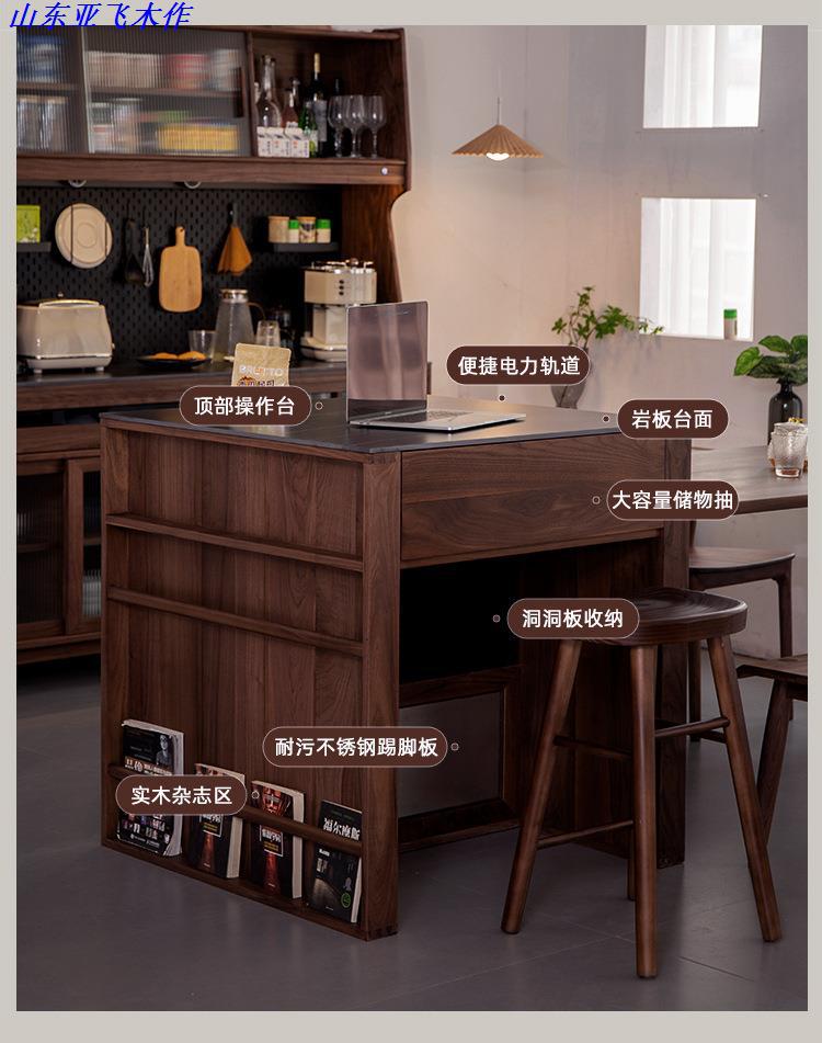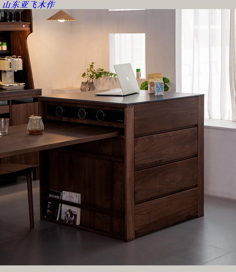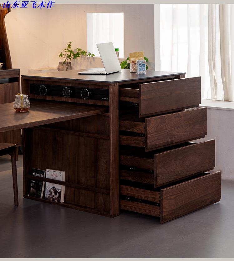 Aparador de madera maciza de nogal negro, moderno mueble de pared integrado para té, mueble de vino para sala de estar, mueble de almacenamiento para cocina