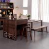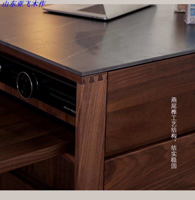 Mueble de TV de lujo nórdico ligero de nogal negro con combinación de mesa de centro estilo wabi-sabi de madera de cerezo, armario de almacenamiento moderno y sencillo