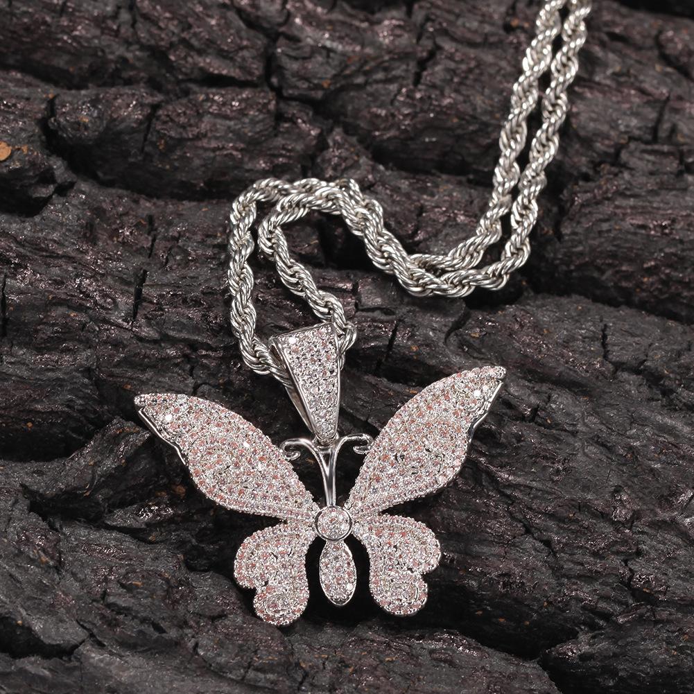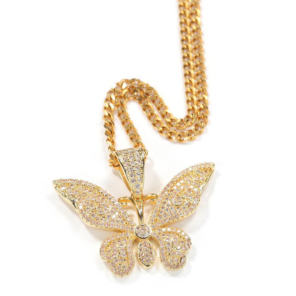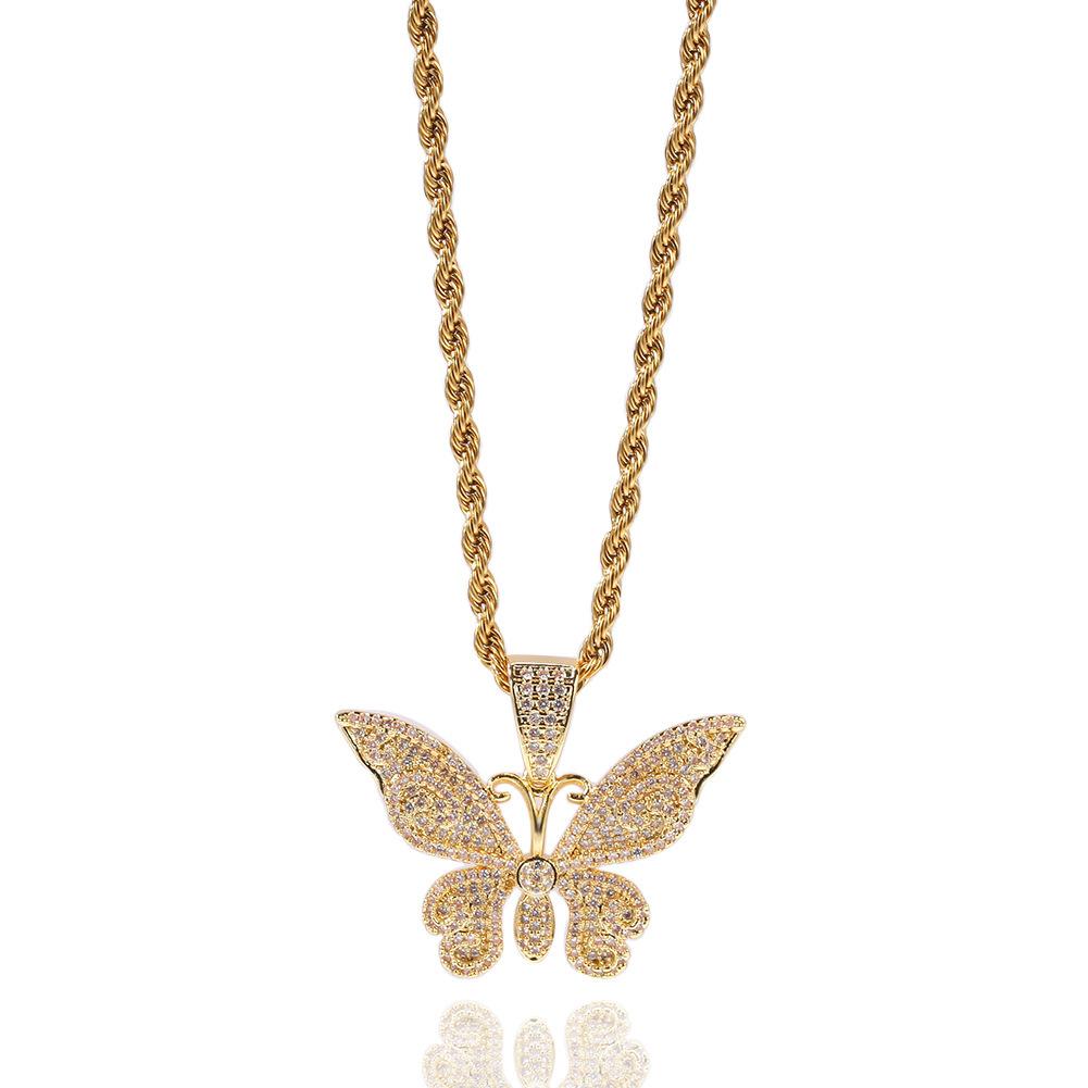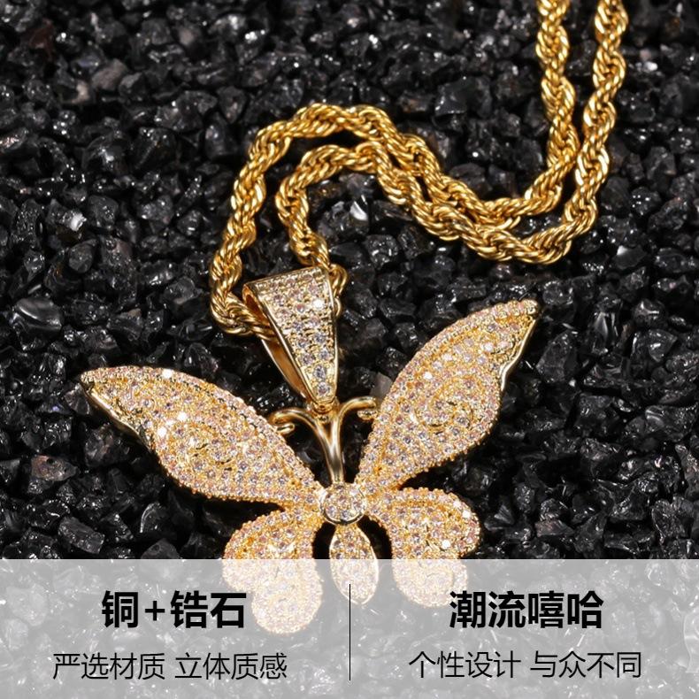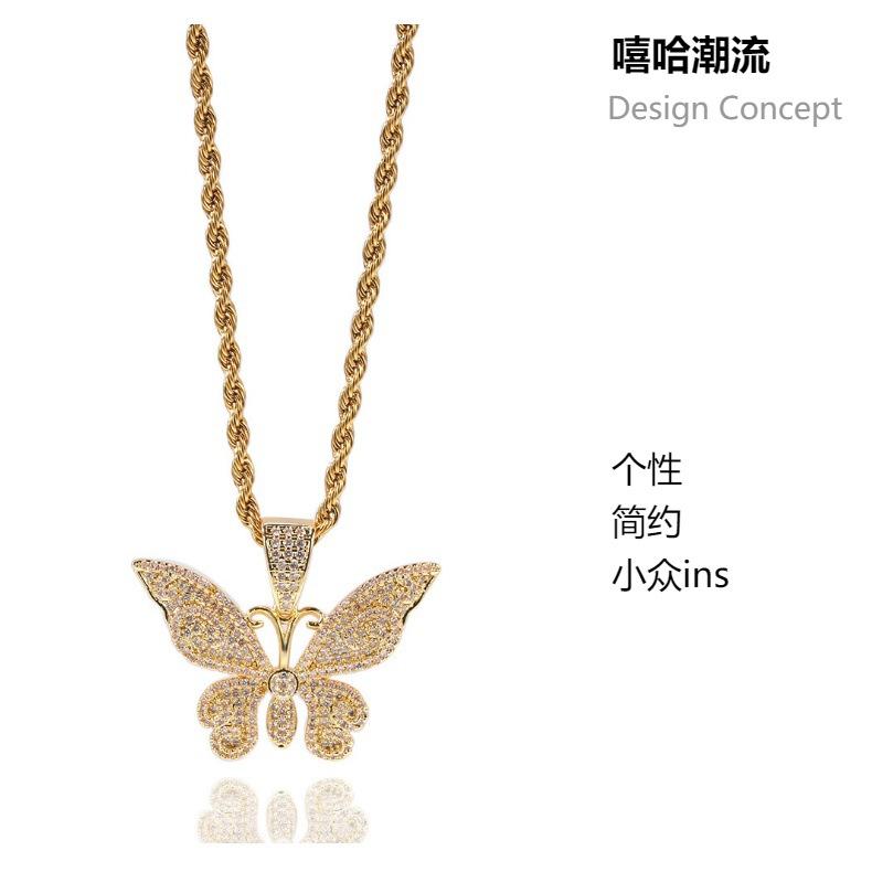 Joyería transfronteriza europea y americana moda cobre incrustado circonita diamante completo mariposa colgante personalidad hip hop collar aire fresco venta al por mayor