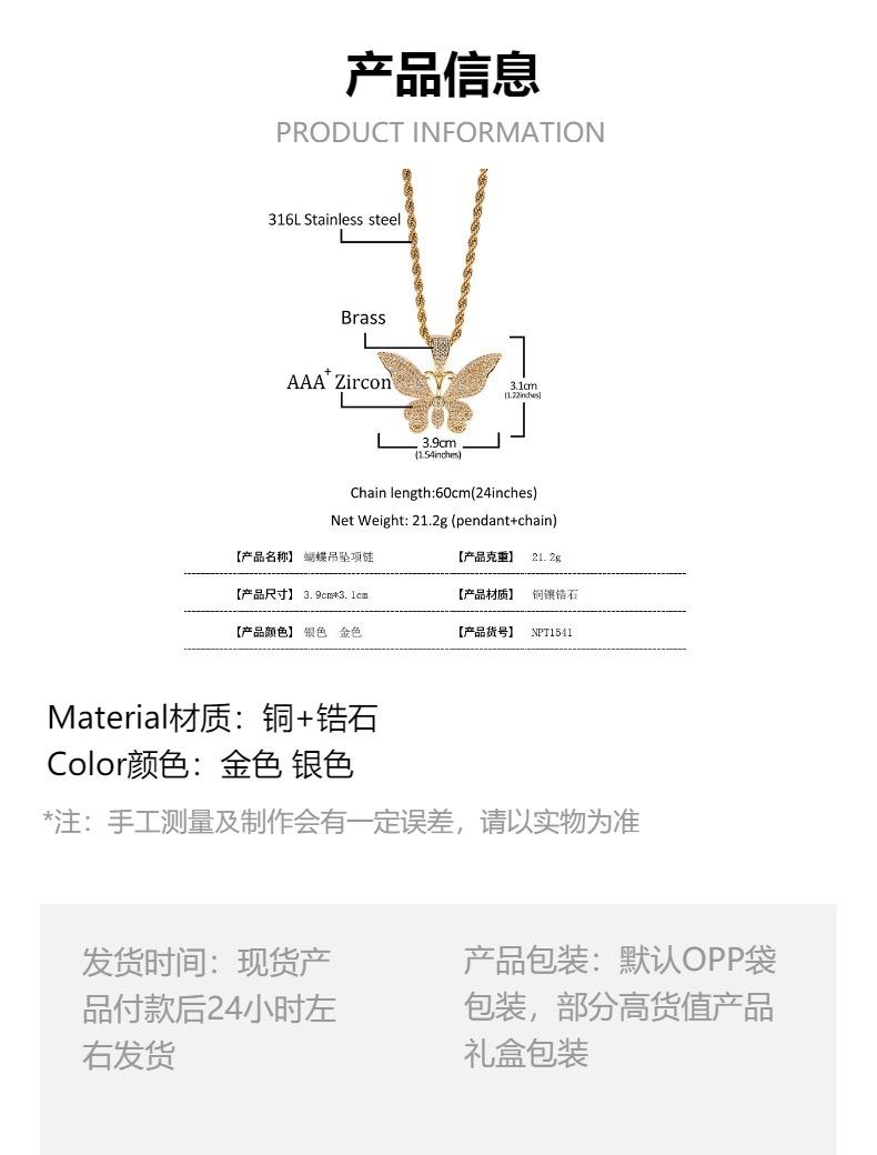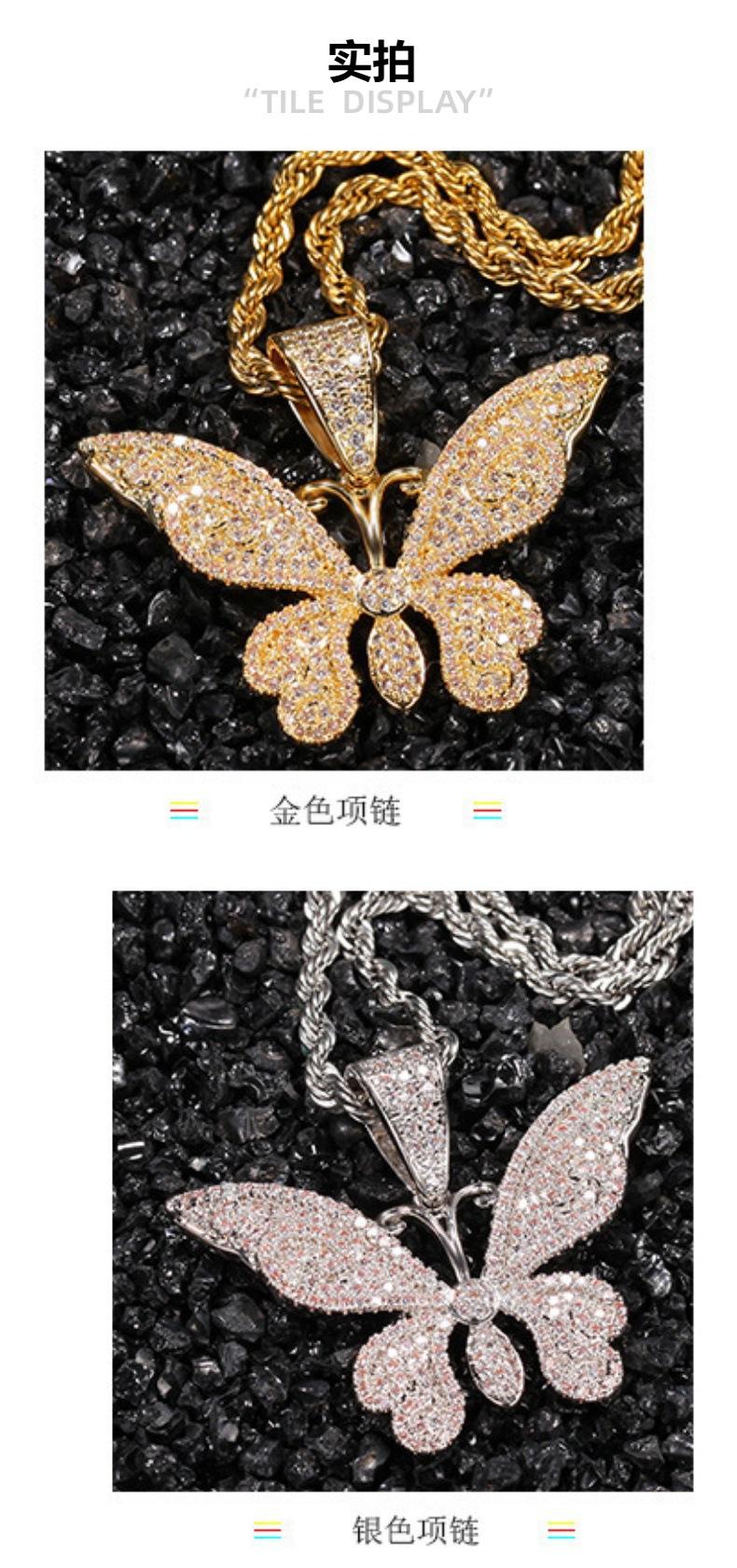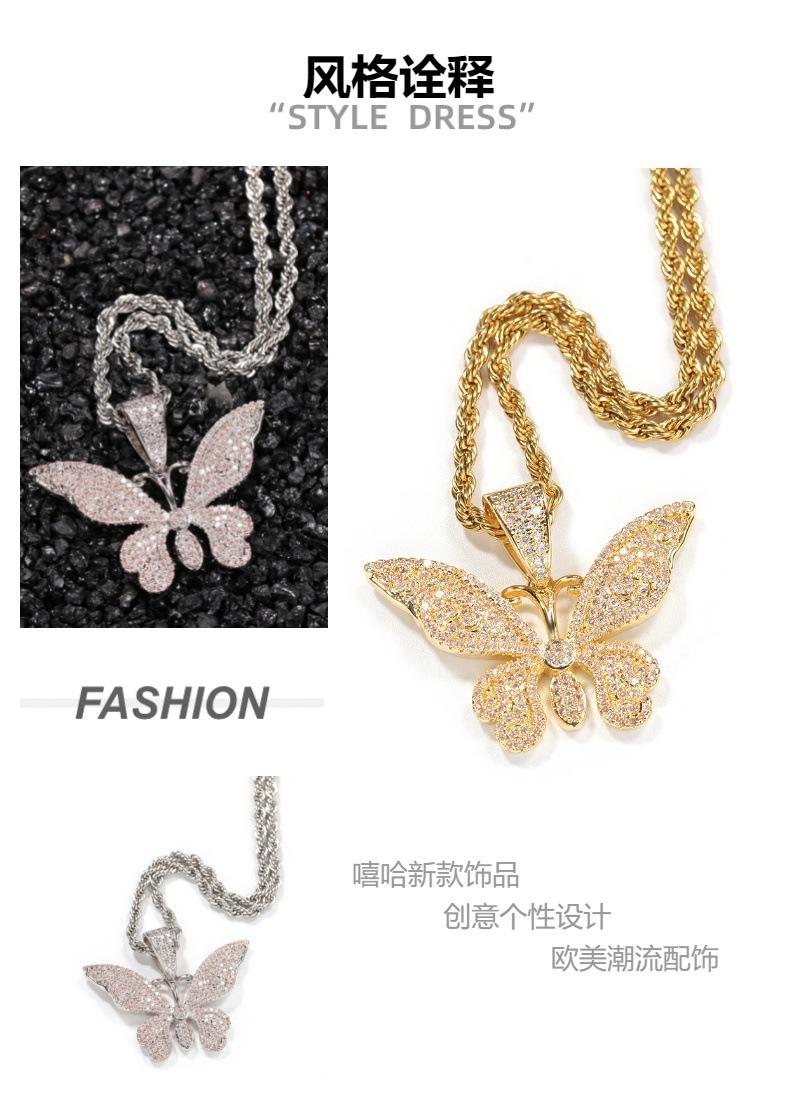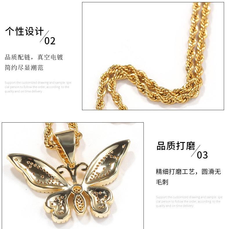 Joyería transfronteriza europea y americana moda cobre incrustado circonita diamante completo mariposa colgante personalidad hip hop collar aire fresco venta al por mayor