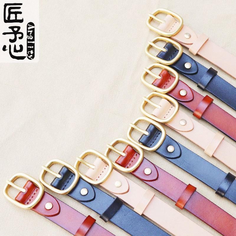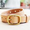 Cinturón de Mujer de Cuero Retro con Hebilla de Cobre de Alta Gama Simple para Todo Vestido Jeans Sello de Cintura