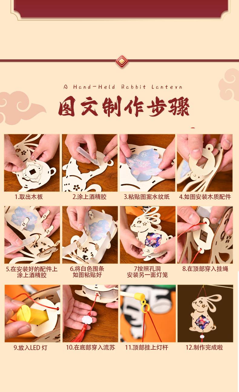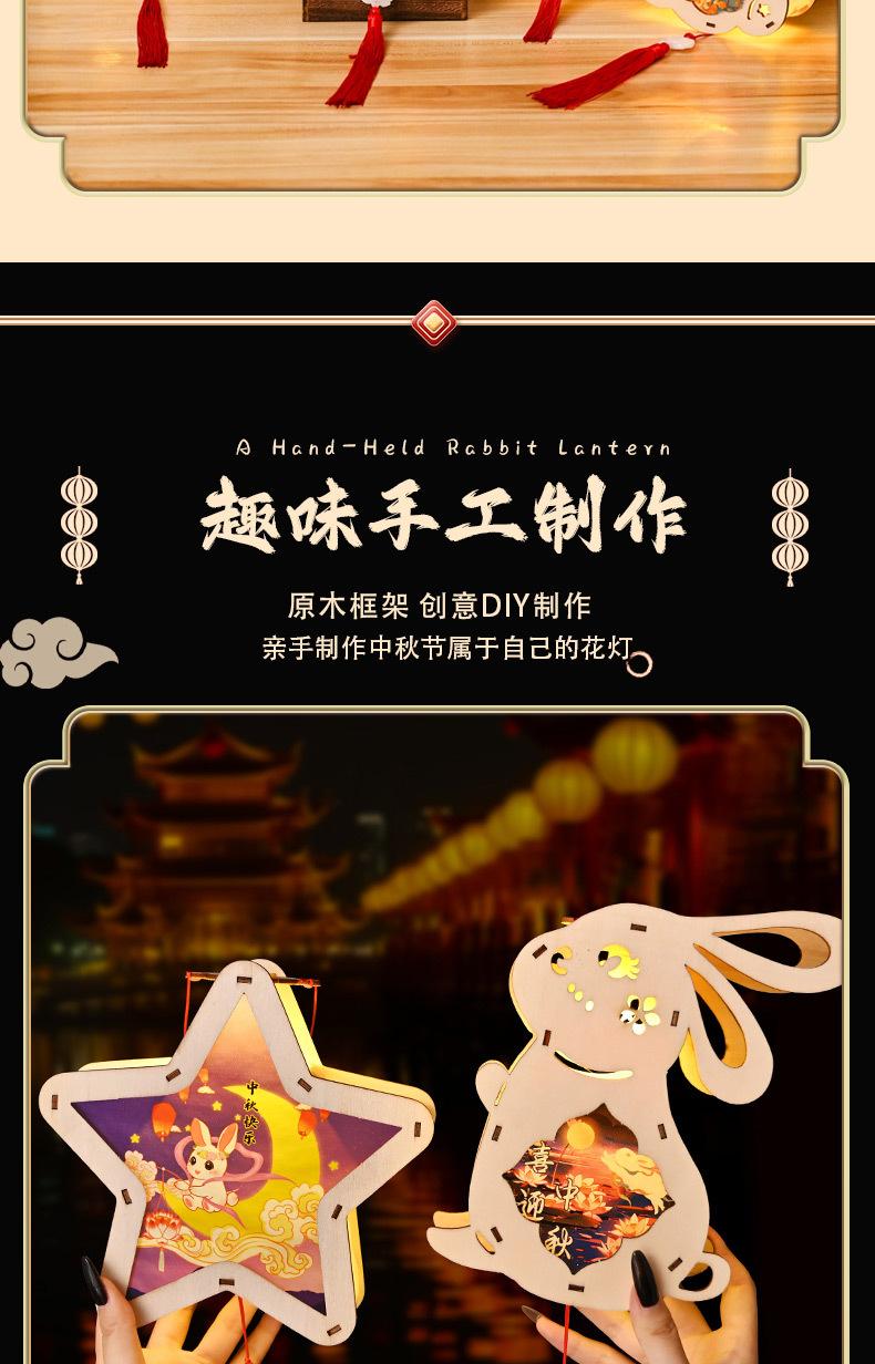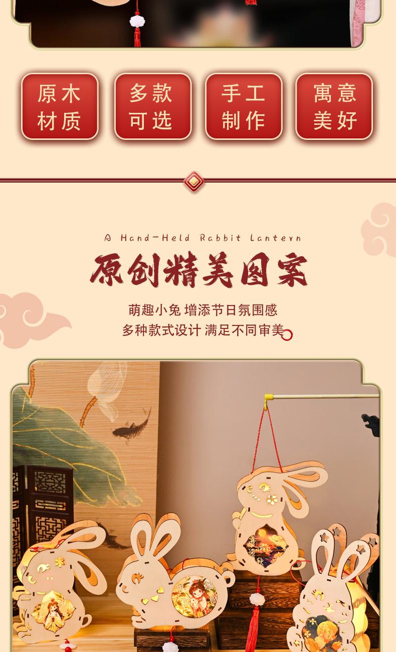 Linterna de Conejo de Medio Otoño Día del Niño Materiales DIY hechos a mano linterna de palacio de madera portátil luminosa antigua linterna
