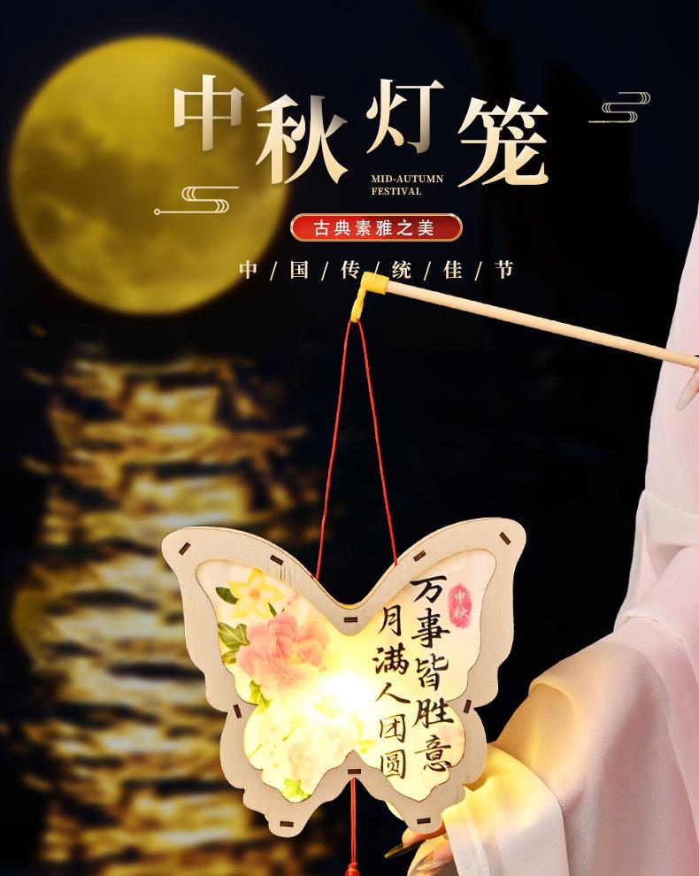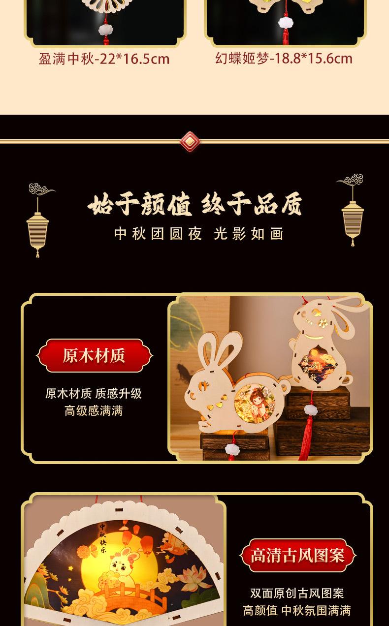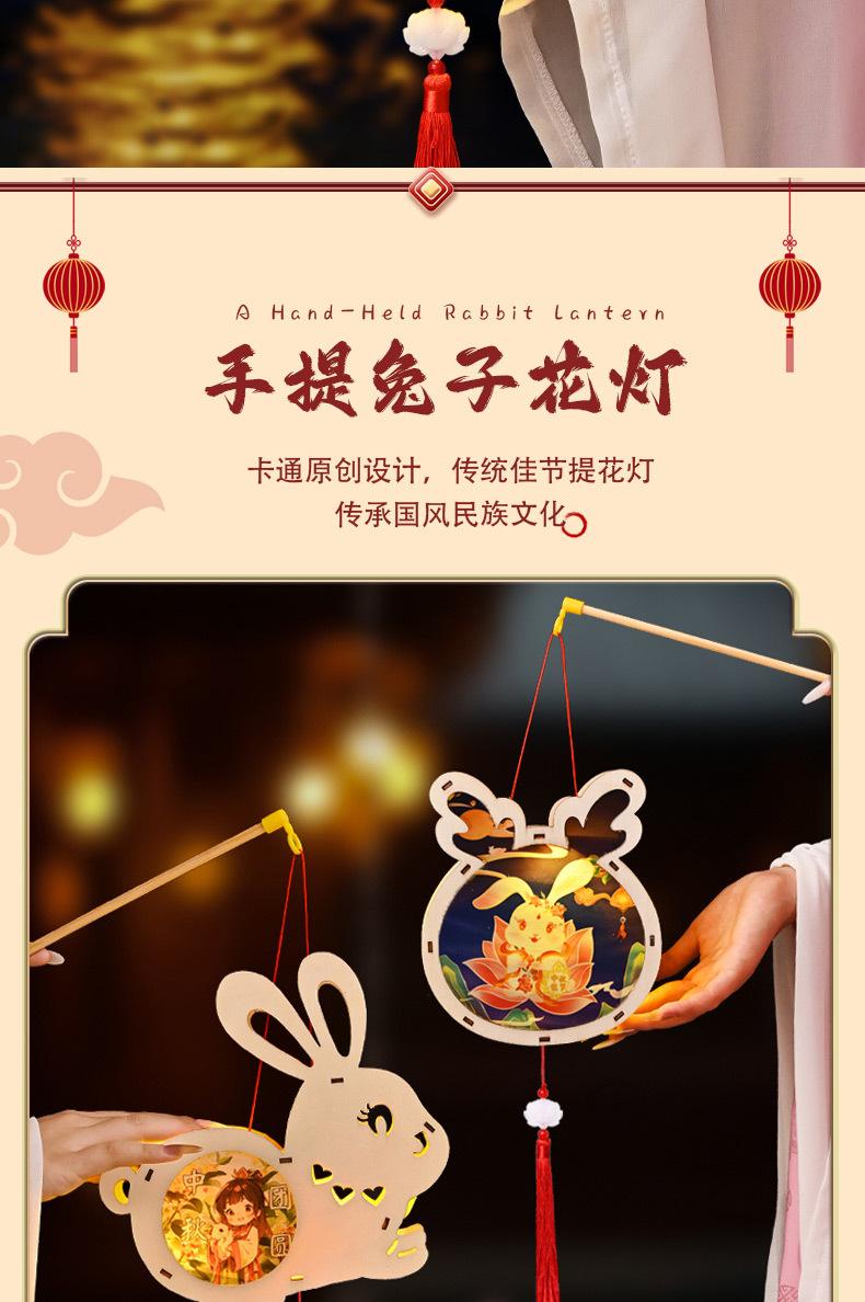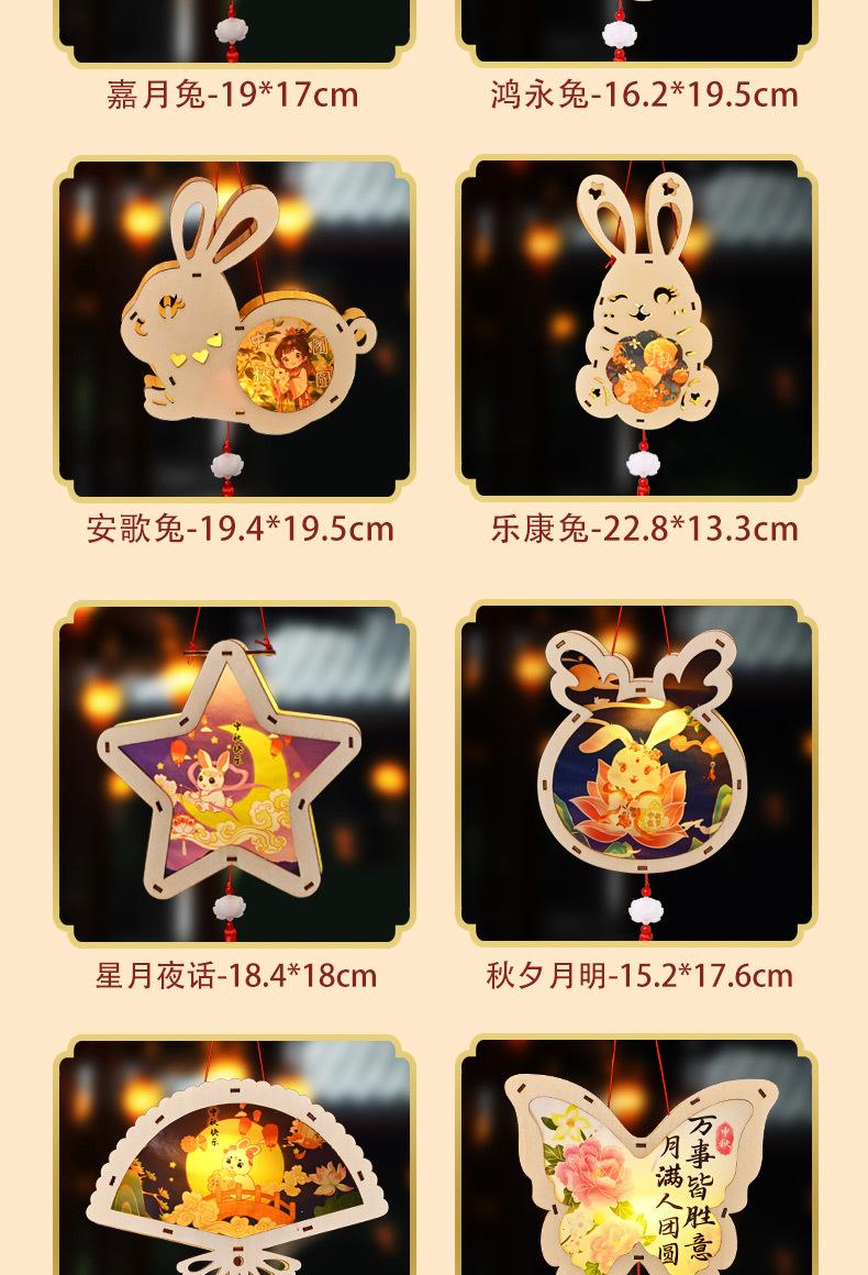 Linterna de Conejo de Medio Otoño Día del Niño Materiales DIY hechos a mano linterna de palacio de madera portátil luminosa antigua linterna