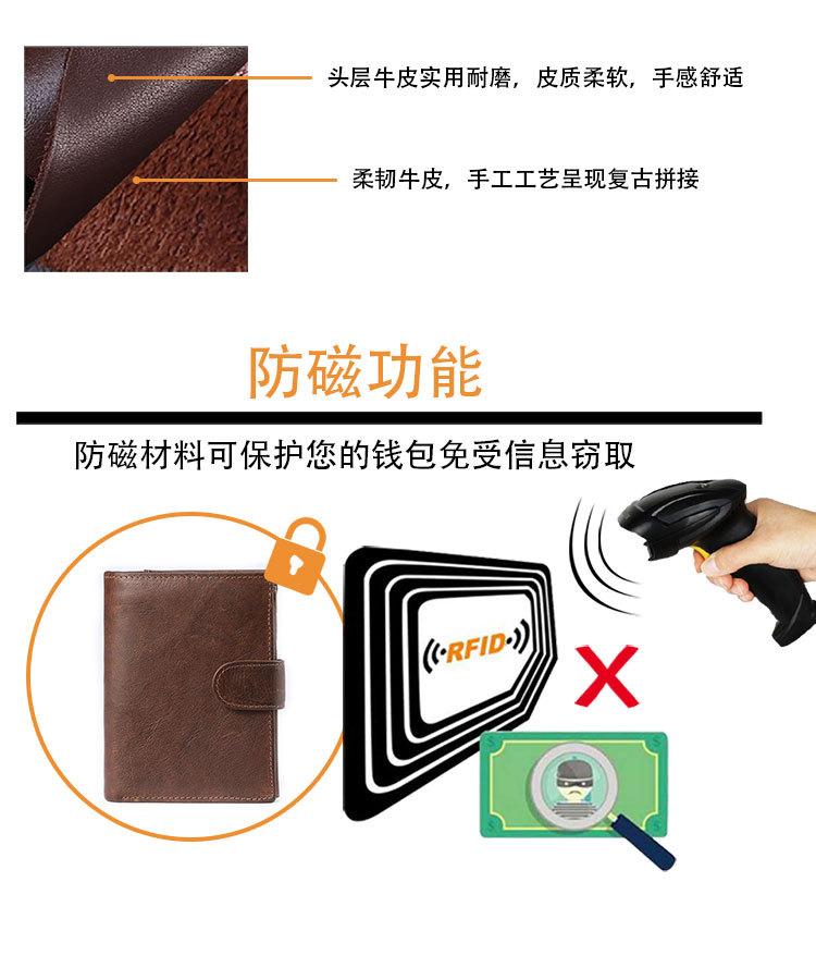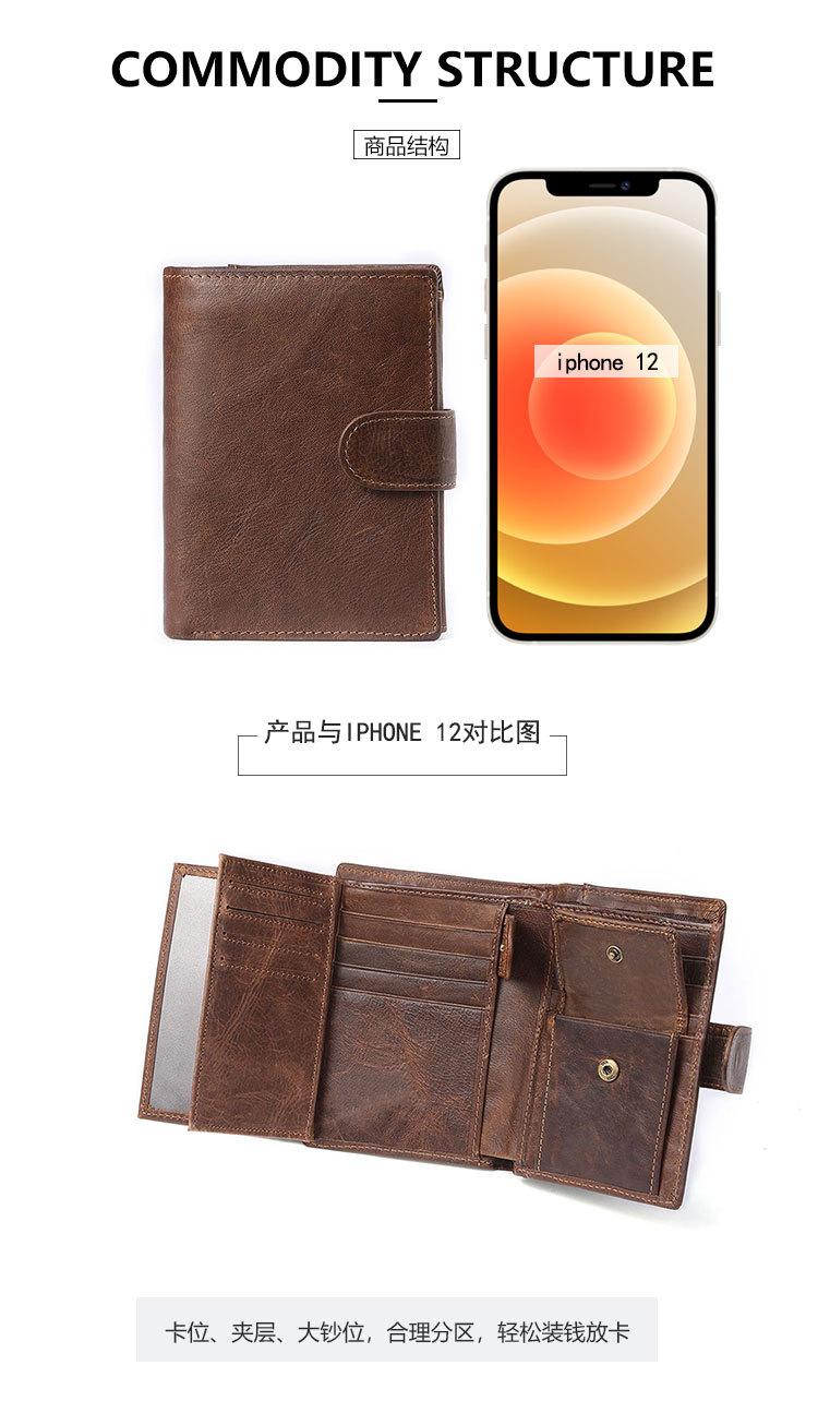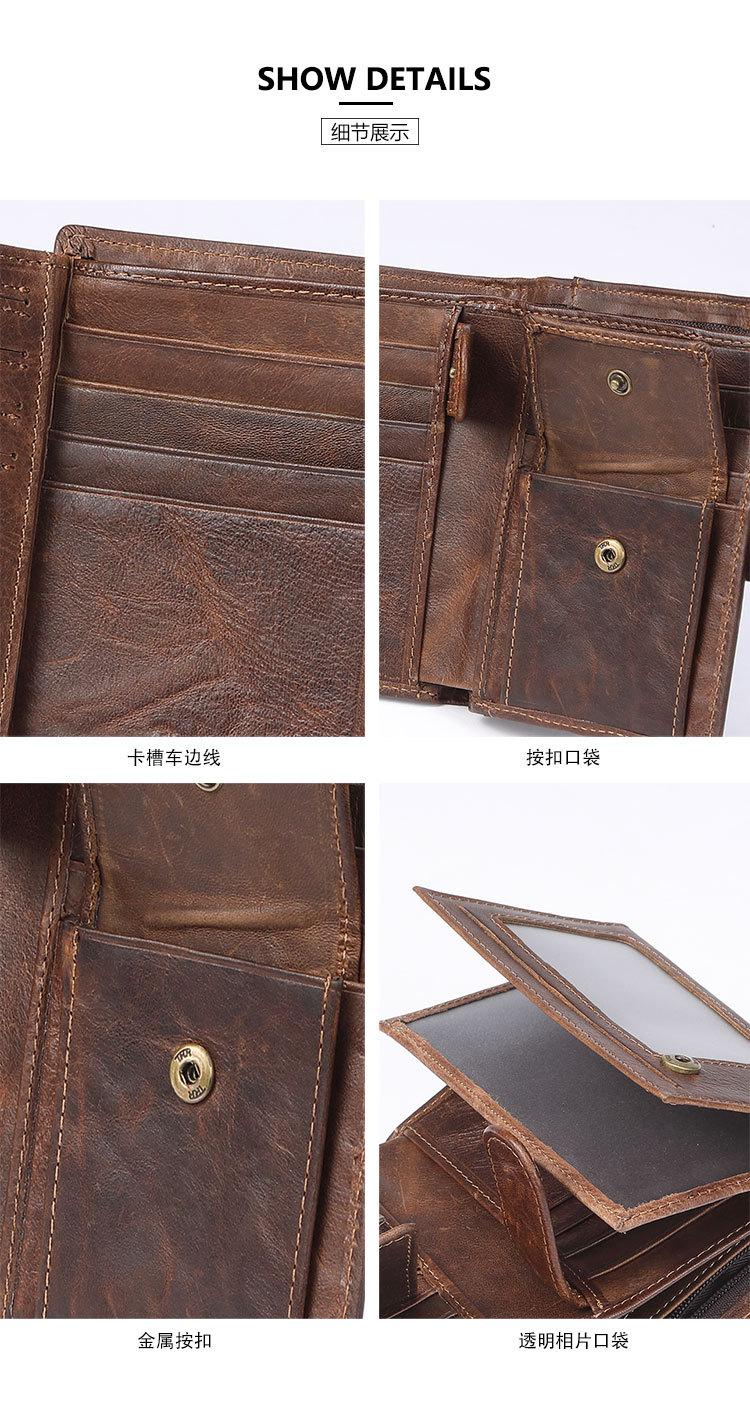Portatarjetas de Cuero para Hombre Transfronterizo Rfid Casual Retro Cuero Genuino Bolso Clutch para Hombre Billetera de Gran Capacidad con Múltiples Ranuras para Tarjetas