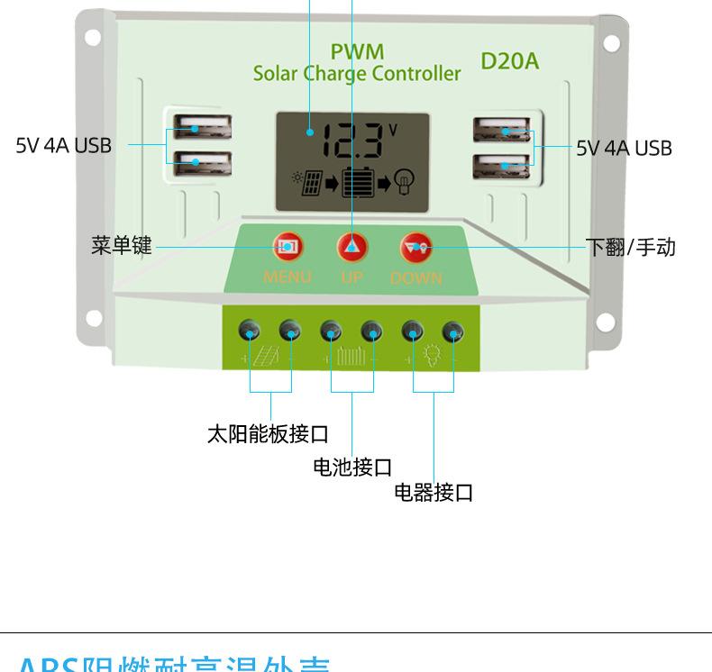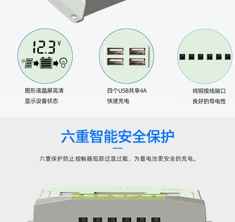 Venta al por mayor de fábrica controlador solar 20A 12V/24vpwm sistema de farola controlador de panel solar