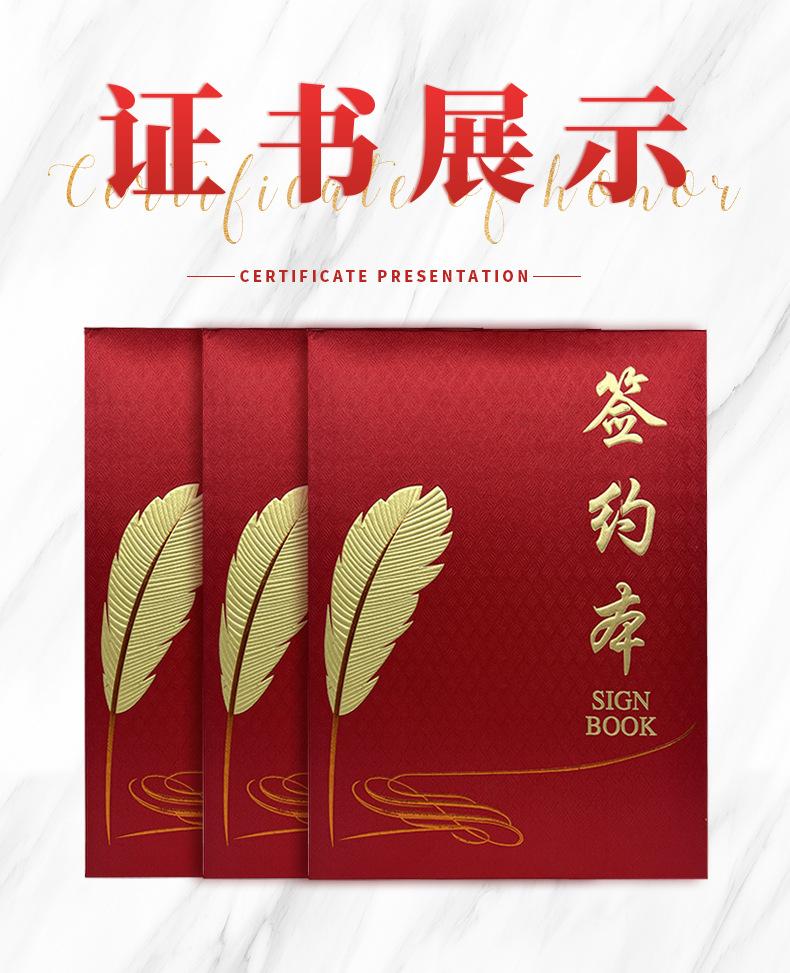 Firma de esta ceremonia de firma de dorado, este certificado de firma de negocios de seda, contrato de personalización, acuerdo de cooperación estratégica Jby