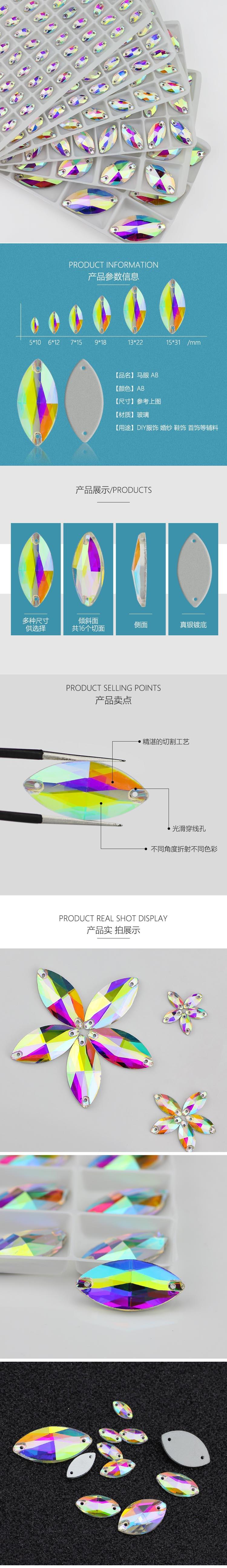 Nombre del producto: Diamante cosido a mano de doble agujero ojo de caballo plateado