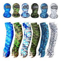 Gorra de ciclismo de verano que absorbe el sudor de cobertura total, combinación de mangas protectoras solares anti-ultravioleta, estampado digital de camuflaje, máscara de seda de hielo