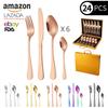 Vajilla transfronteriza de acero inoxidable 1010 juego de 24 piezas de cuatro principales para 6 personas hotel occidental cuchillo para bistec y tenedor juego de cuchara