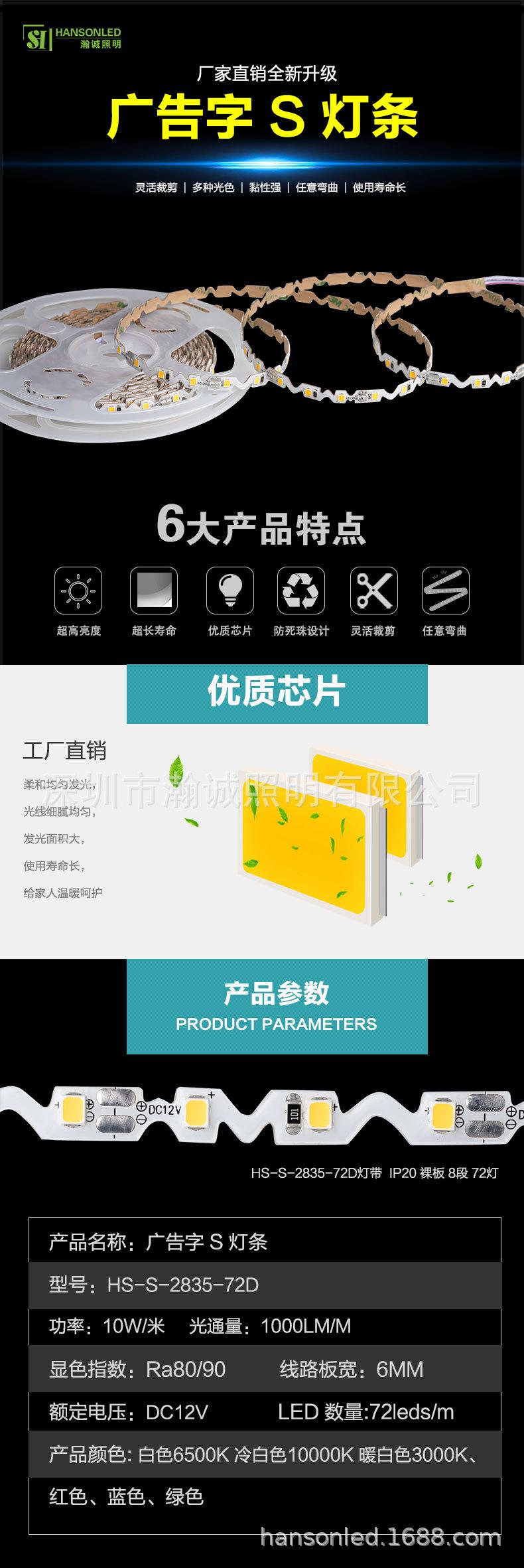 Tira de luz personalizada en forma de S RGB a todo color 12V bajo voltaje perla de lámpara 2835 6mm de ancho para fuente de palabra publicitaria luminosa fábrica
