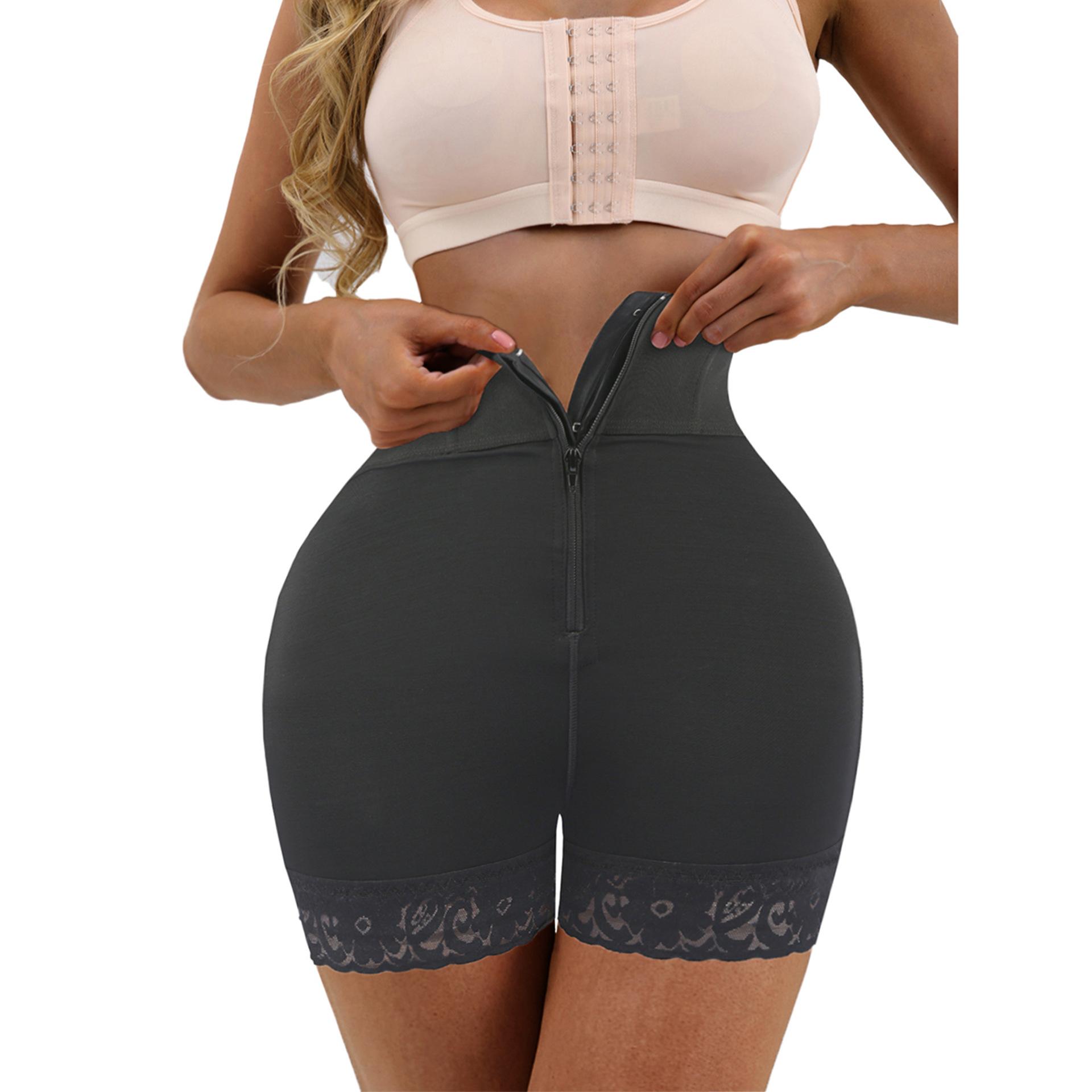 Pantalones de encaje de cintura alta para moldear el cuerpo para mujer, shorts moldeadores de cuerpo con cremallera, levantador de glúteos, control de abdomen, ropa interior moldeadora de glúteos