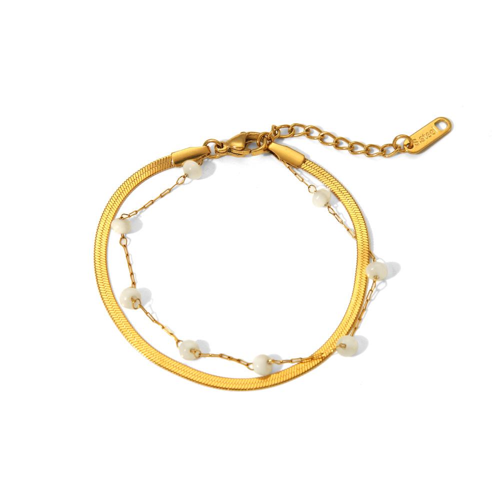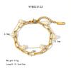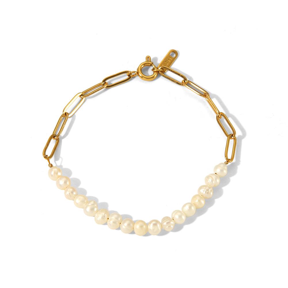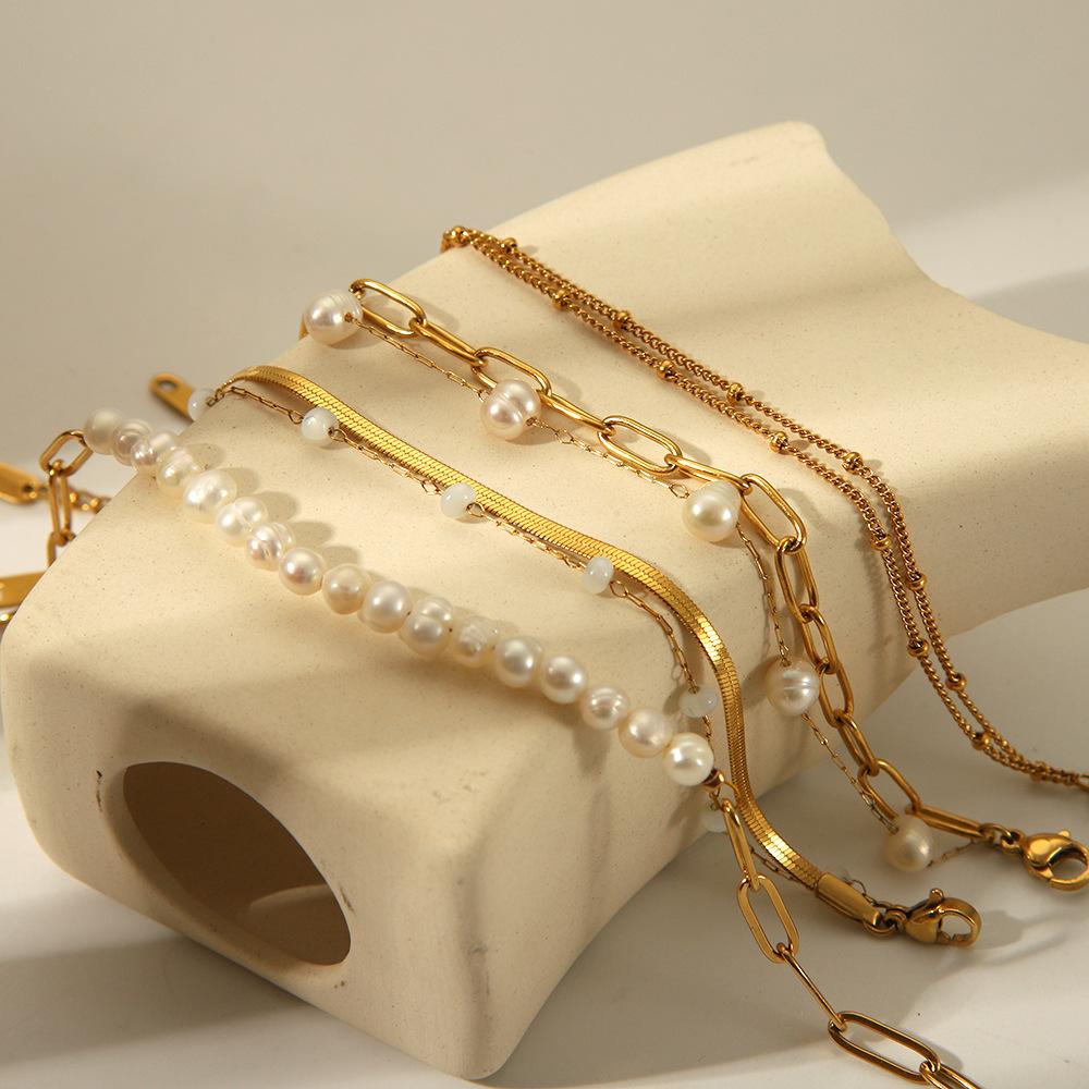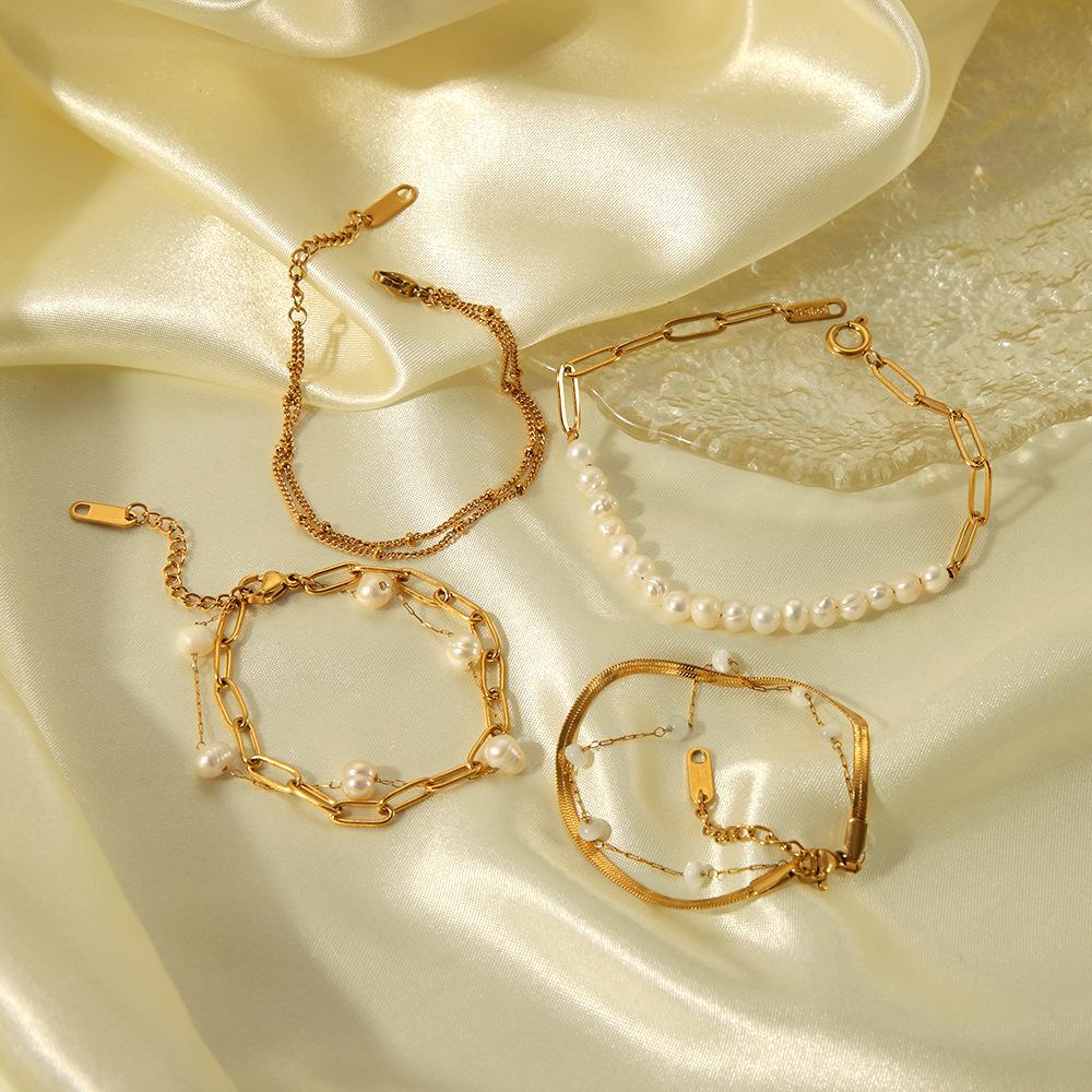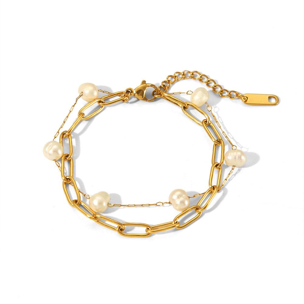 Pulsera de acero inoxidable de dos capas con diseño de nicho de perlas de agua dulce, joyería de mano sencilla y temperamento al por mayor.