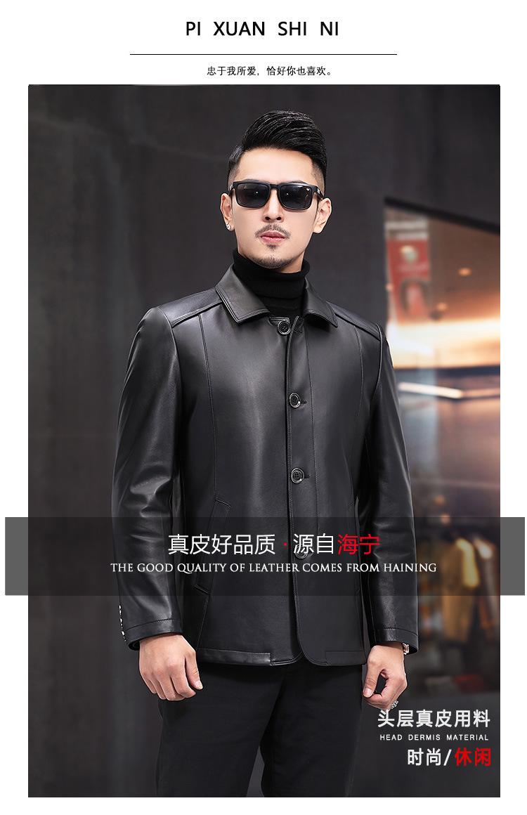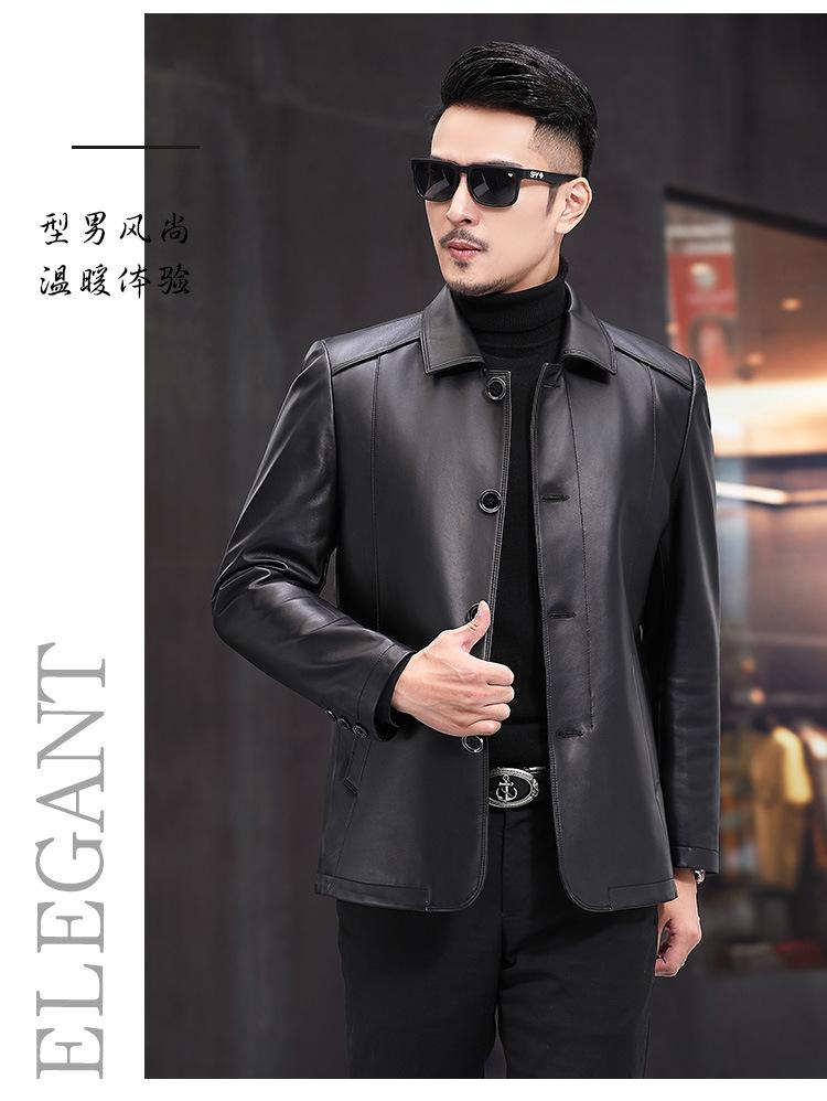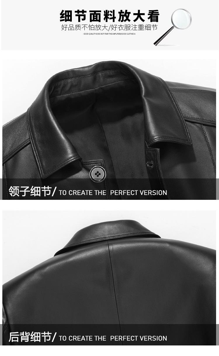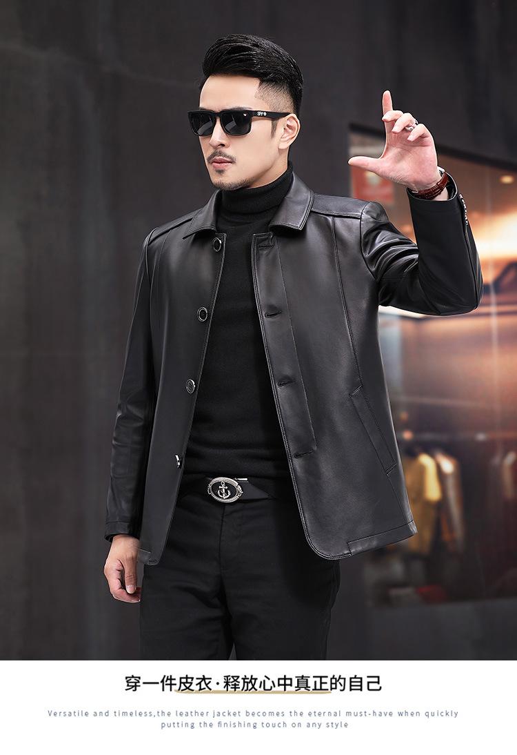 Chaqueta de Cuero Genuino Haining Personalizada para Hombre, Chaqueta de Piel de Cabra para Papá, Solapa para Mediana Edad y Ancianos, Primavera y Otoño, Casual, Versátil