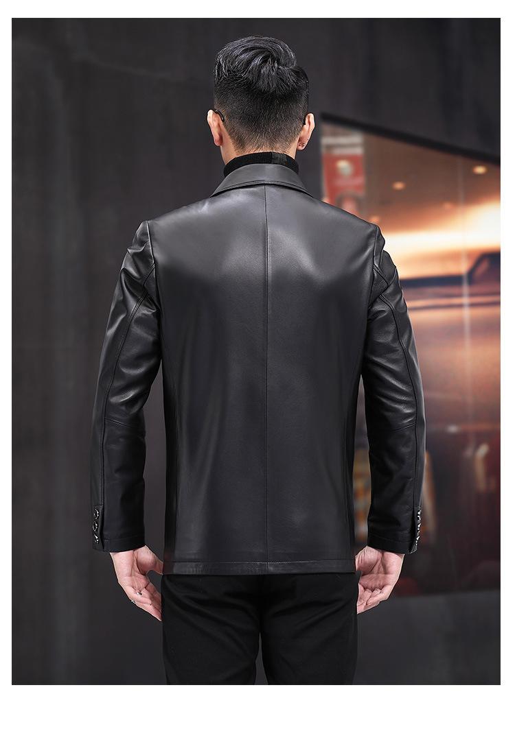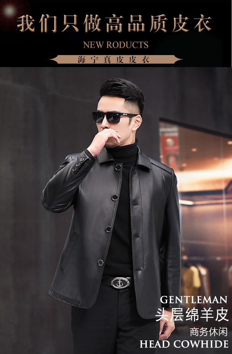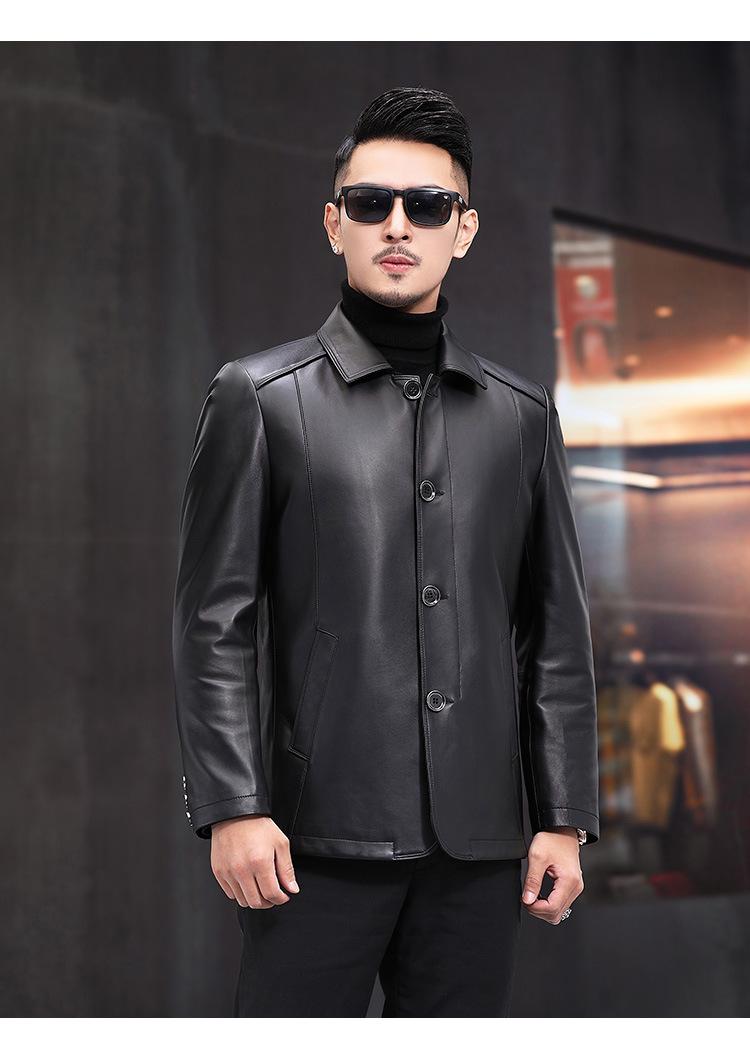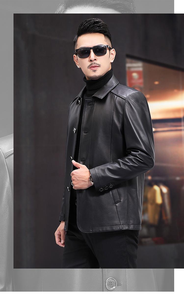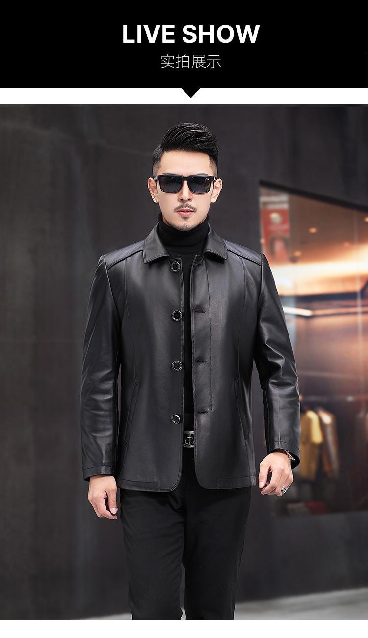 Chaqueta de Cuero Genuino Haining Personalizada para Hombre, Chaqueta de Piel de Cabra para Papá, Solapa para Mediana Edad y Ancianos, Primavera y Otoño, Casual, Versátil