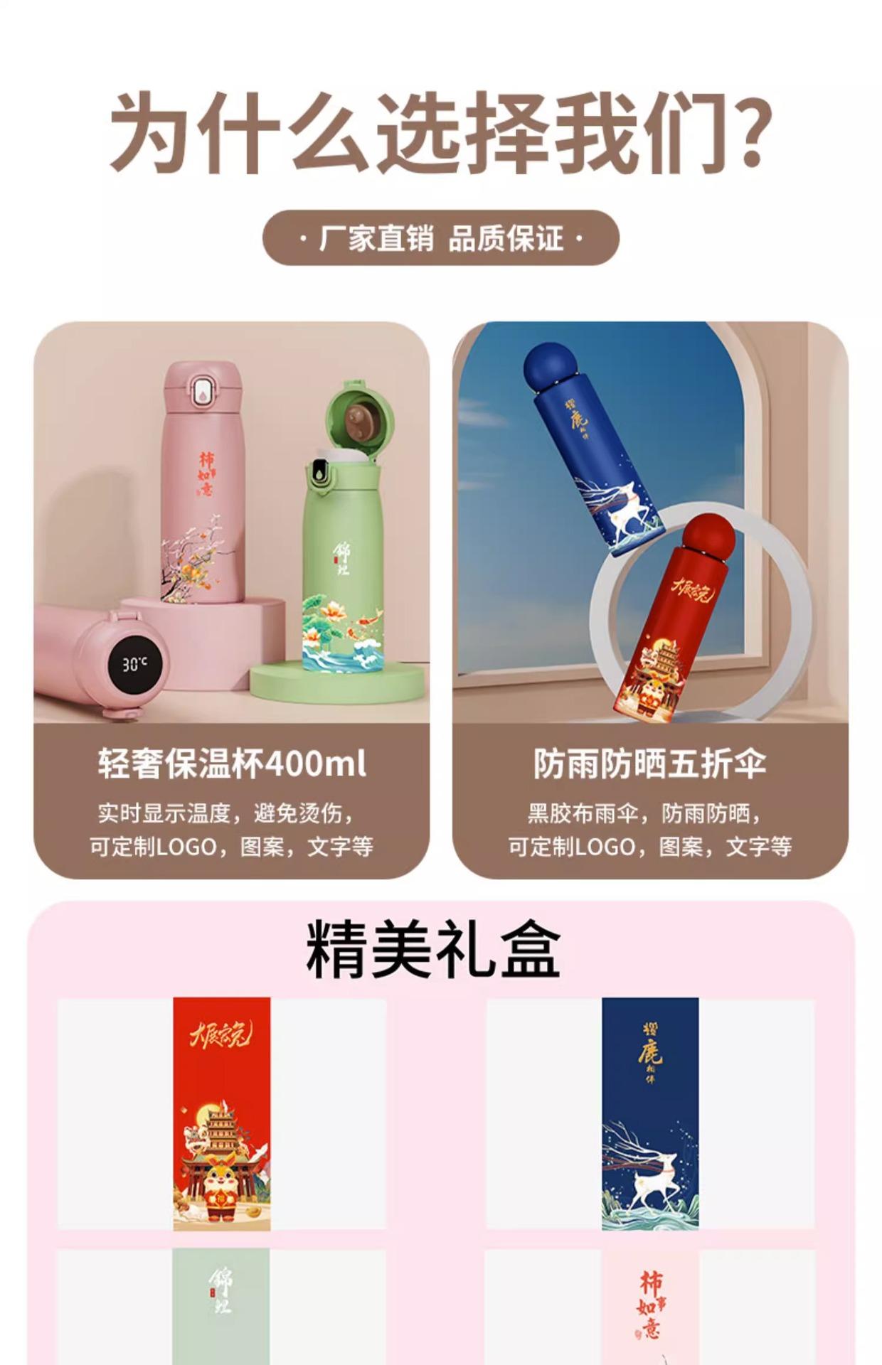 Nuestra tienda vende principalmente todo tipo de regalos de empresa, regalos para ceremonias de inauguración, regalos navideños, regalos para reuniones de oficina, regalos promocionales, regalos de bienestar, regalos para exposiciones, regalos digitales y otros regalos personalizados para satisfacer las necesidades de diferentes clientes. Gracias a nuestras grandes cantidades y precios competitivos, podemos ofrecer personalización de regalos al por mayor. Disponemos de una gran cantidad de sets de regalo en stock y podemos personalizar pedidos urgentes el mismo día.