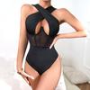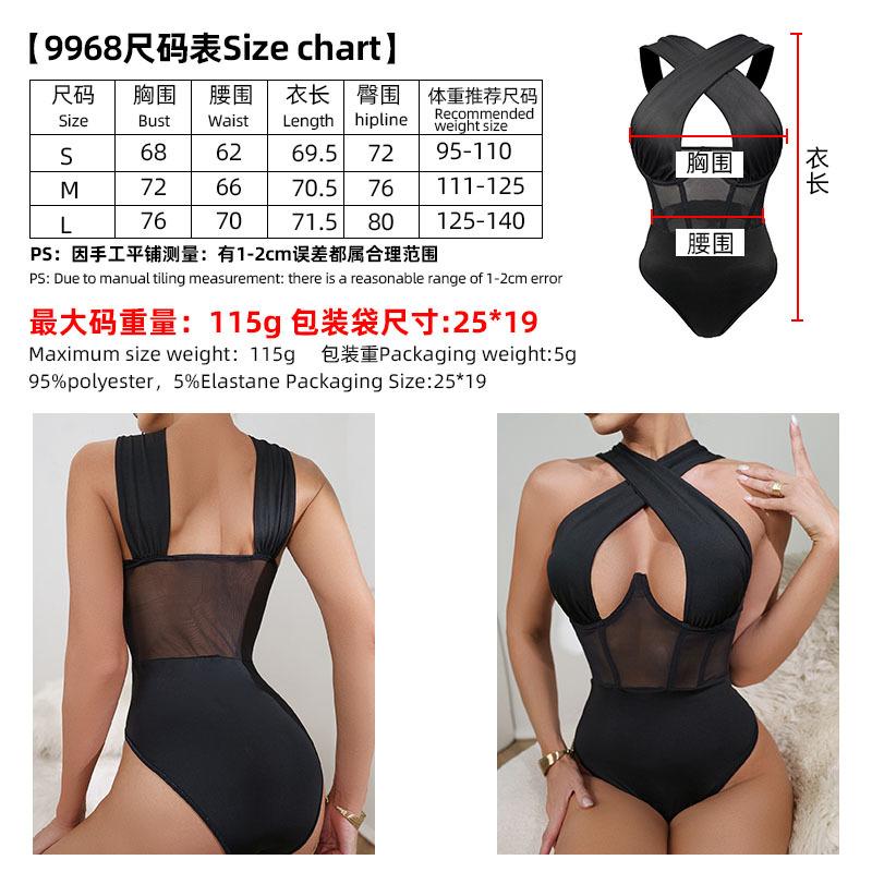 Faja Moldeadora Transfronteriza Malla Transparente Chica Sexy Body con Varilla Amazon Cuello Halter Recorte Body Faja Ajustado