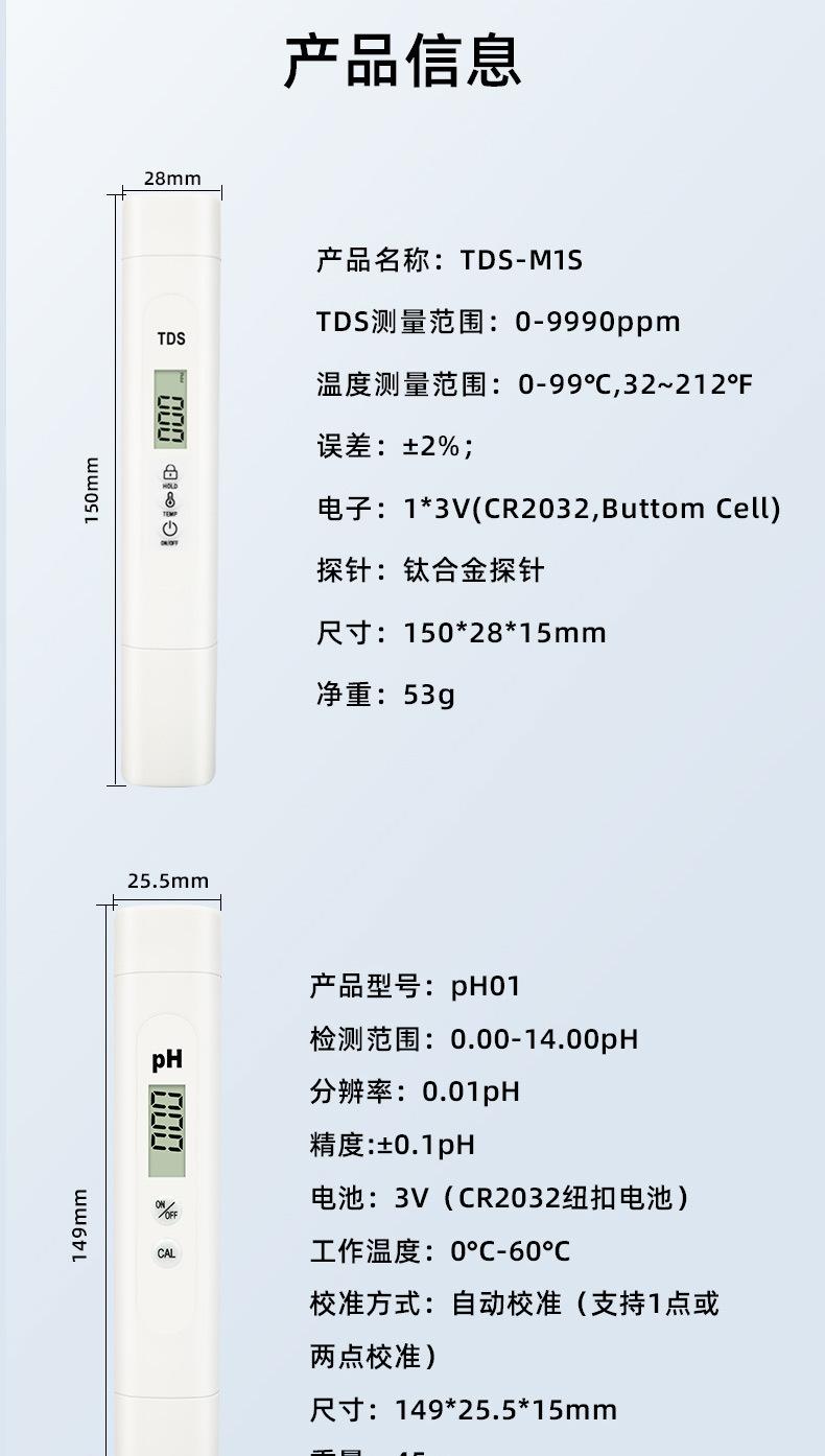 [Conjunto combinado] Pluma para prueba de calidad del agua TDS medidor de pH calidad transfronteriza medidor de acidez nuevo 0.01 pluma para prueba de valor de pH pluma de pH