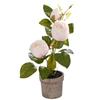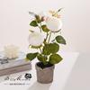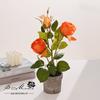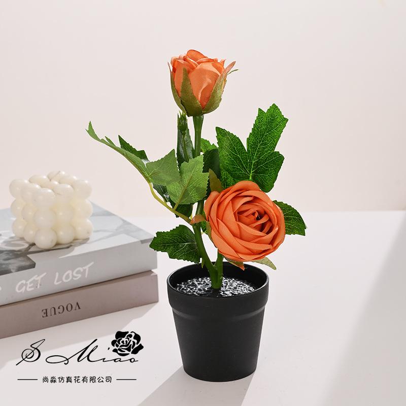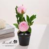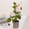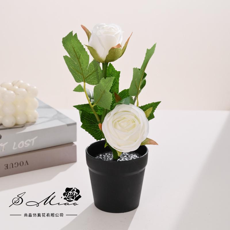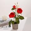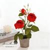 Bonsái de capullo de rosa de tres cabezas de simulación (maceta de pulpa de papel)