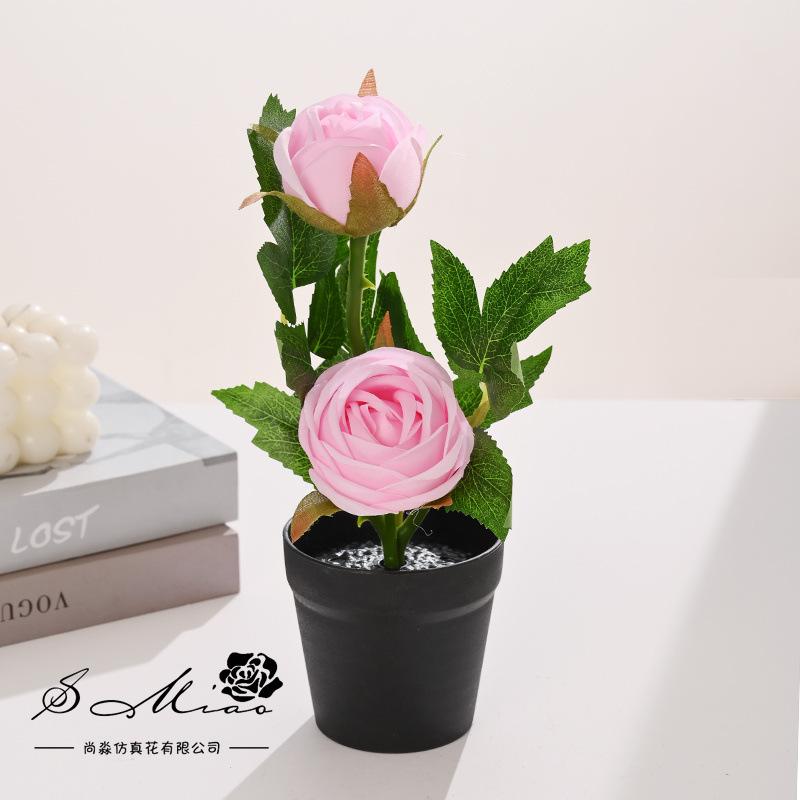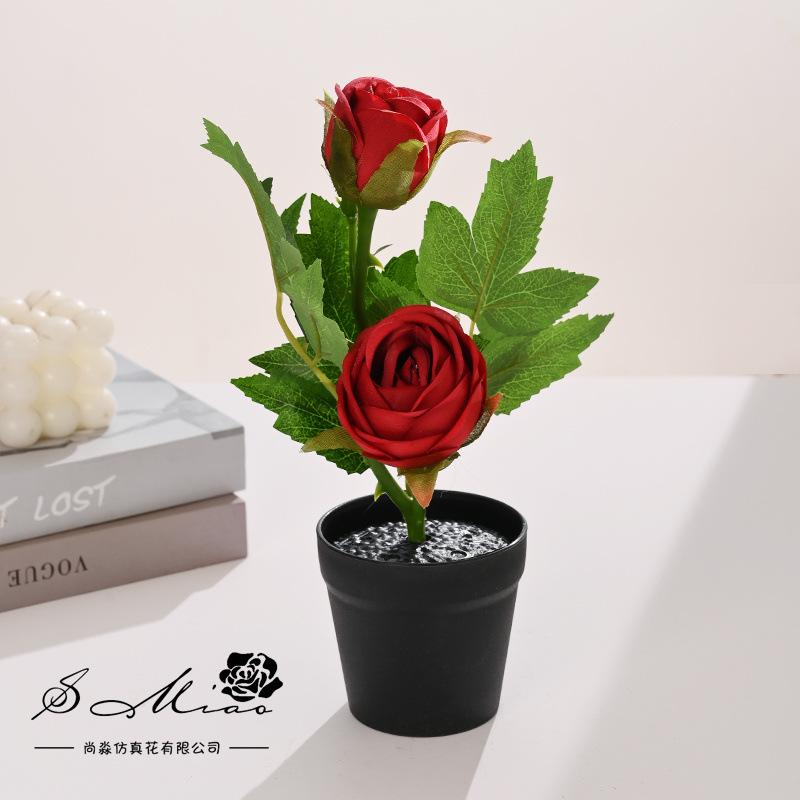 Simulación de bonsái de rosa de dos cabezas (maceta internacional de plástico)