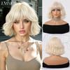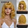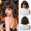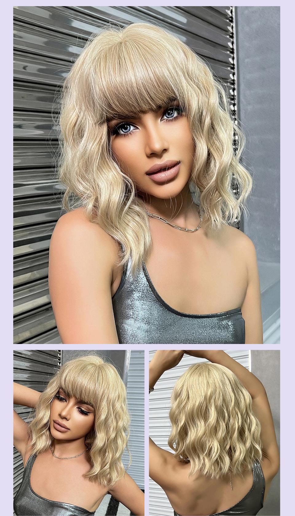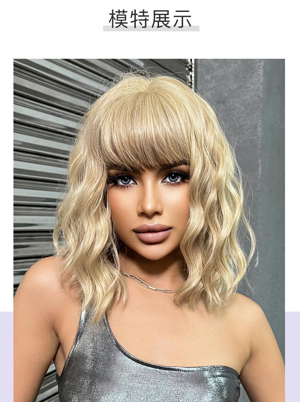 Peluca de mujer de cabello corto y rizado con flequillo natural, estilo cyber celebridad, estilo bobo realista, color dorado, pelucas de cabeza completa disponibles.