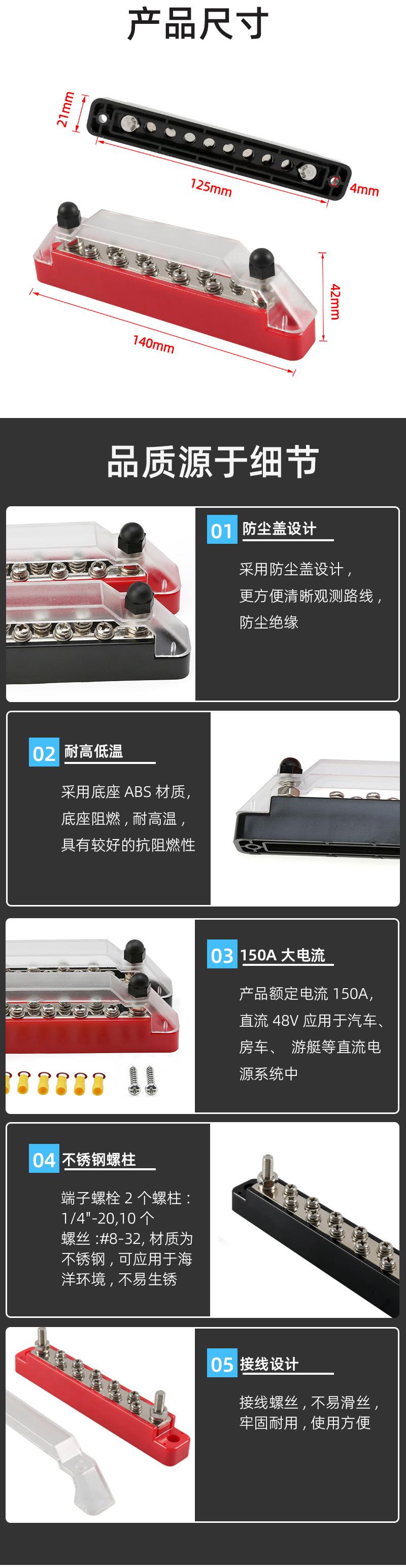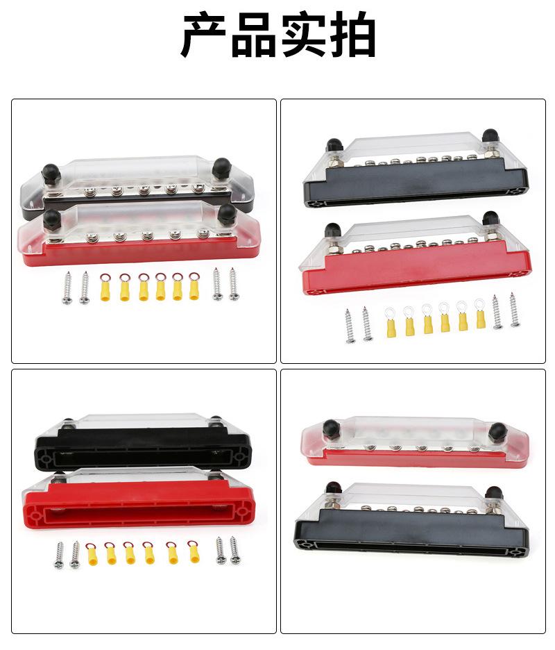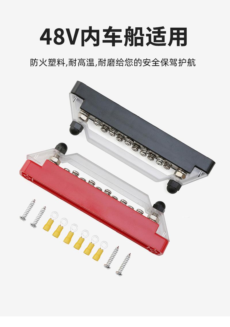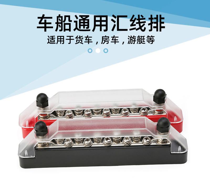 Coche RV Camión Barco Yate Modificación Autobús Terminal de Espárrago de 10 Posiciones Terminal de Alta Corriente M6 M8 Terminal Bus Barra Colectora DiezBloques de terminales300VAC/DC48VBarra colectora de CC de 10 vías terminales de distribución RV rojo y negroCon cubierta antipolvo transparente