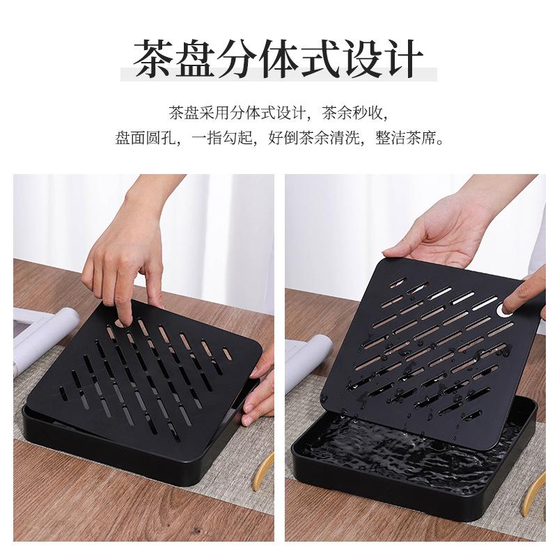 Compra Juego de Té de Plástico ABS Bandeja de Té con Drenaje, Bandeja de Almacenamiento Cuadrada, Tipo Almacenamiento de Agua de Doble Capa Bandeja de Té Kung Fu, Mesa de Té, Escritorio de Té al por mayor en Joom.pro