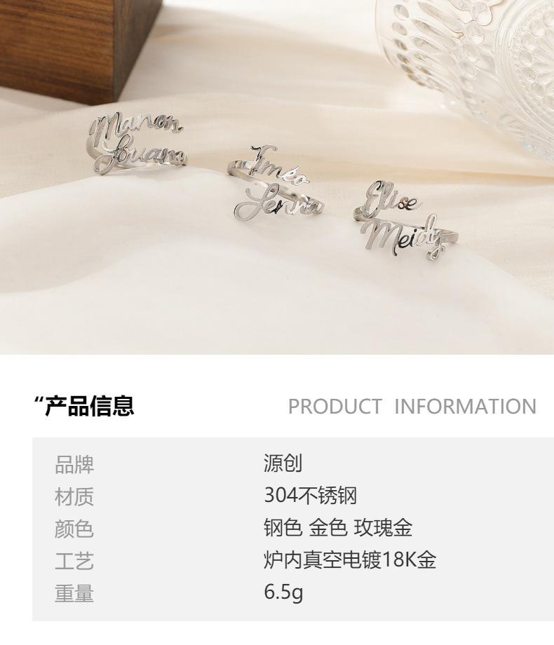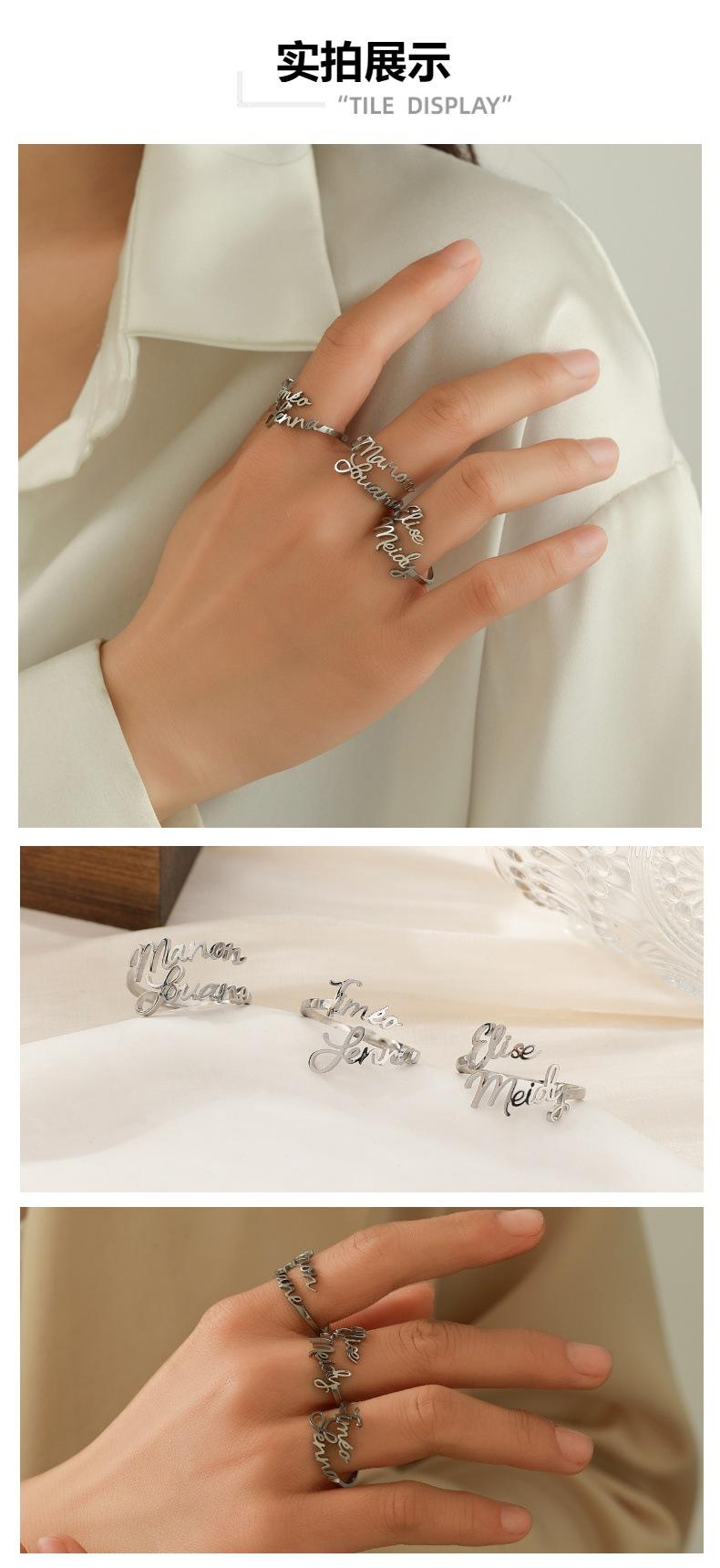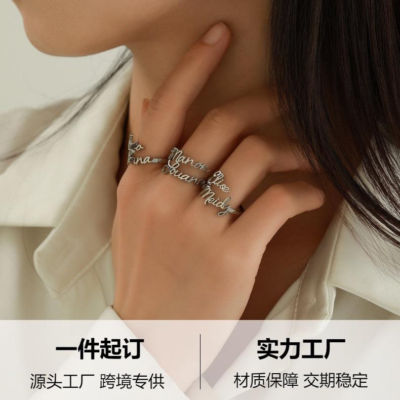 [Personalizado privado] Anillo de nombre en inglés de acero inoxidable anillo de nombre doble para pareja personalizado chapado en oro de 18K