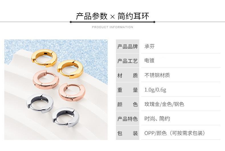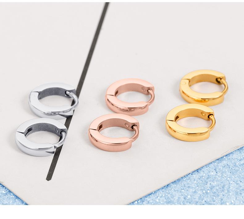 Pendientes de estilo europeo y americano con diseño transfronterizo, con hebilla de acero de titanio y círculo liso, nuevos pendientes de acero inoxidable que combinan con todo para hombres y mujeres.