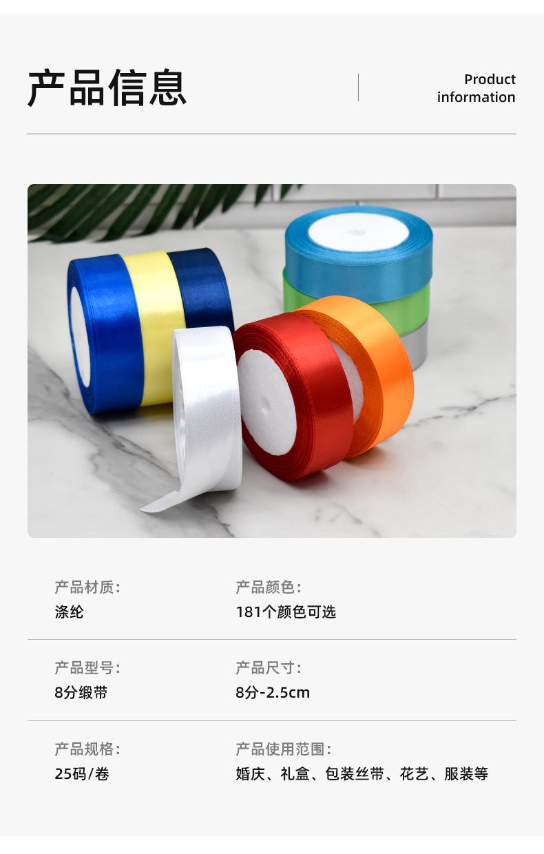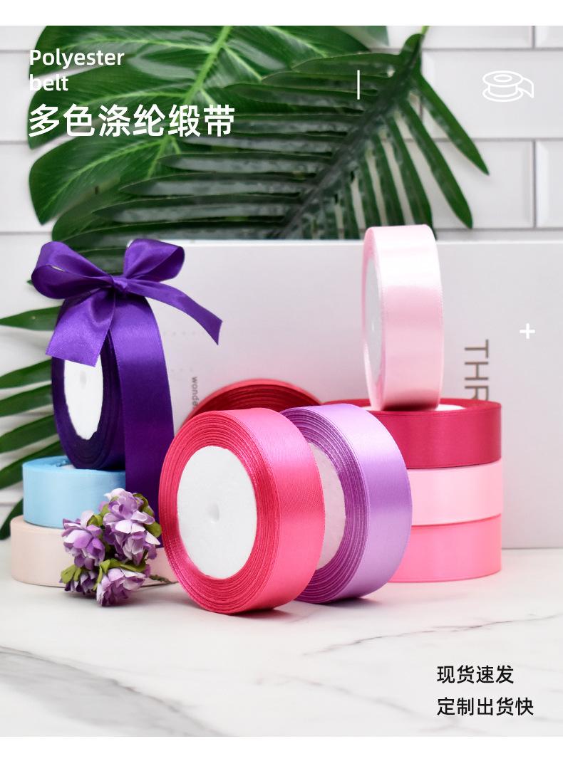 Suministro Exclusivo Transfronterizo de Cinta de Satén de Poliéster de 2.5 cm de Ancho para Decoración de Pastel de Bodas, Caja de Regalo con Cinta, Cinta para Lazo DIY