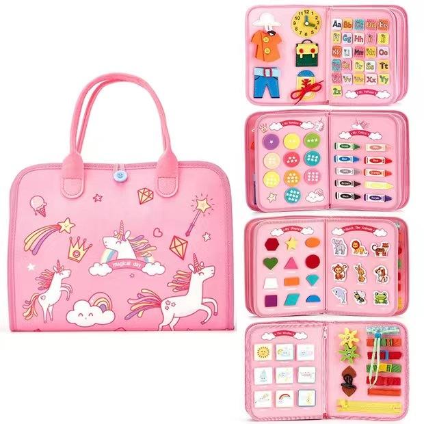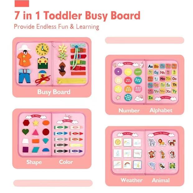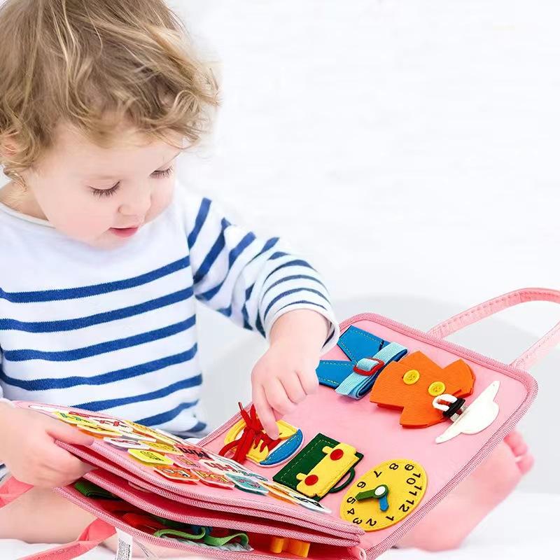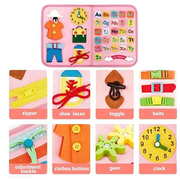 Tablero de Aprendizaje para Niños, Habilidades para la Vida, Vestirse, Atar Cordones, Bolsa de Fieltro, Tablero de Fieltro Ocupado para Niños Pequeños, Habilidad Práctica