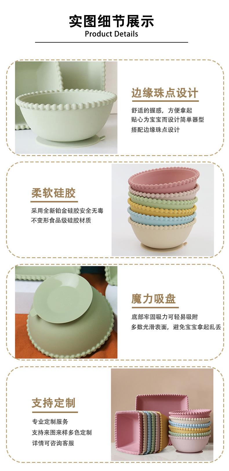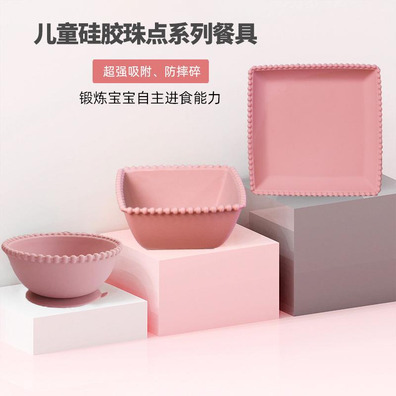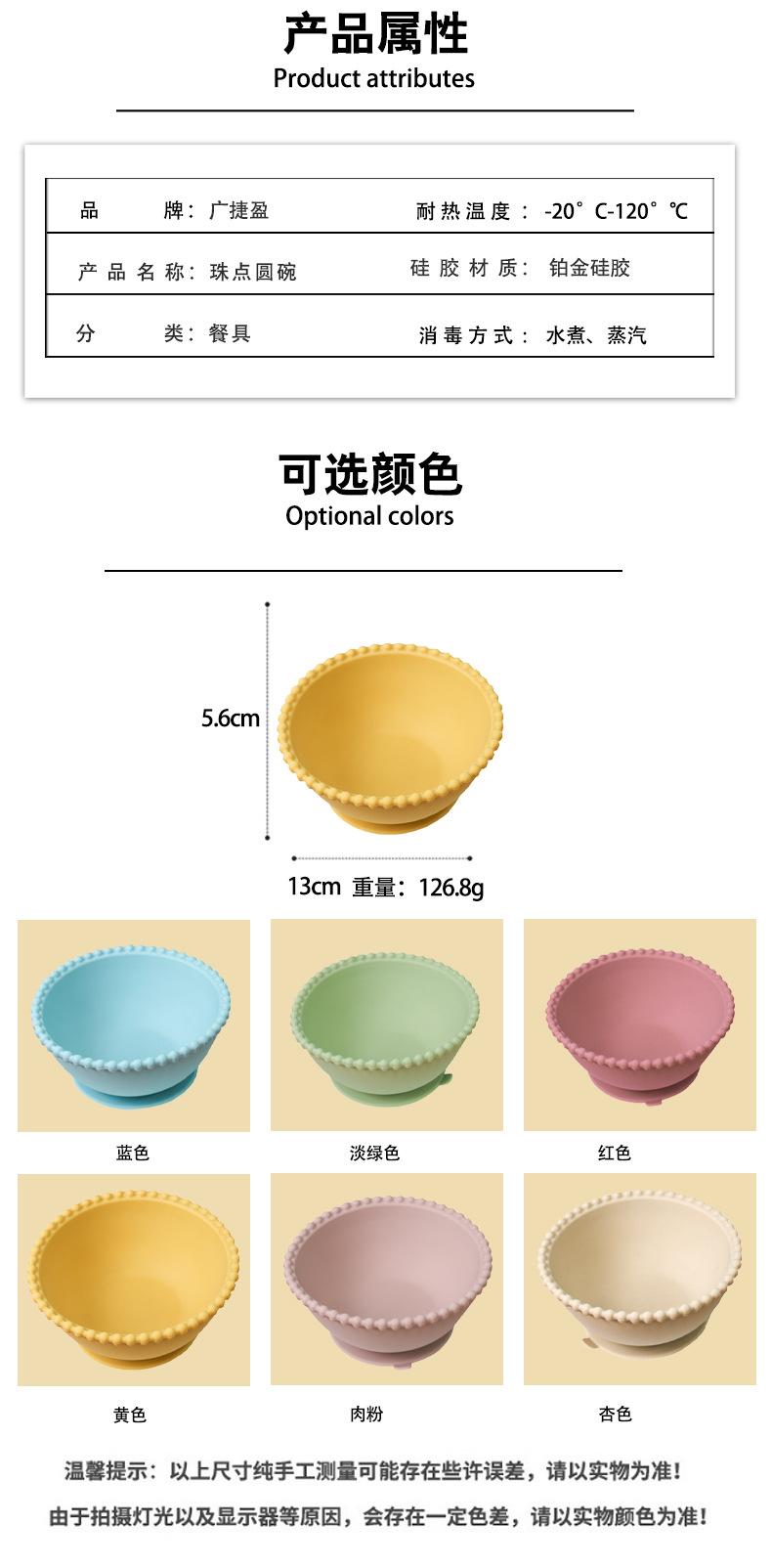 Vajilla de punto de cuentas de venta caliente de fábrica, tazón con ventosa resistente a caídas, tazón de silicona de grado alimenticio para suplemento alimenticio para bebés, tazón de entrenamiento para comer para bebés