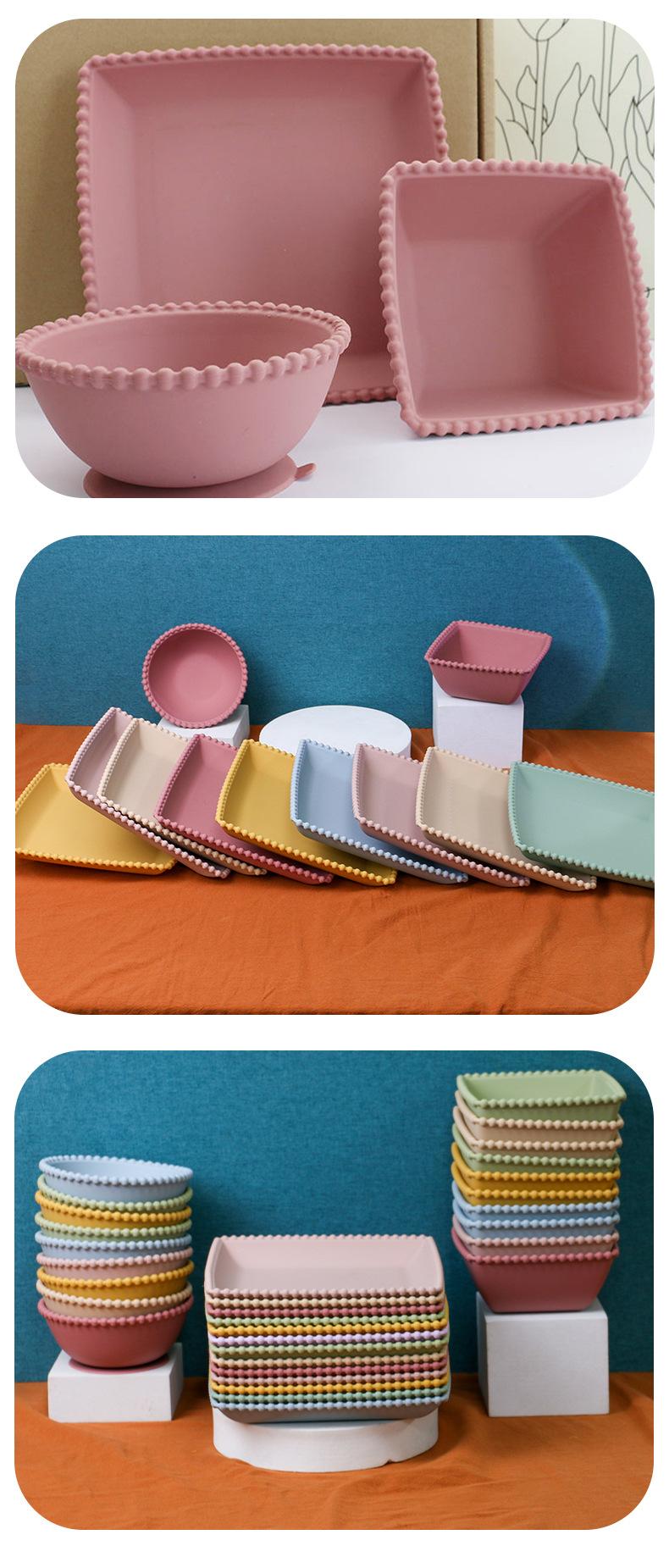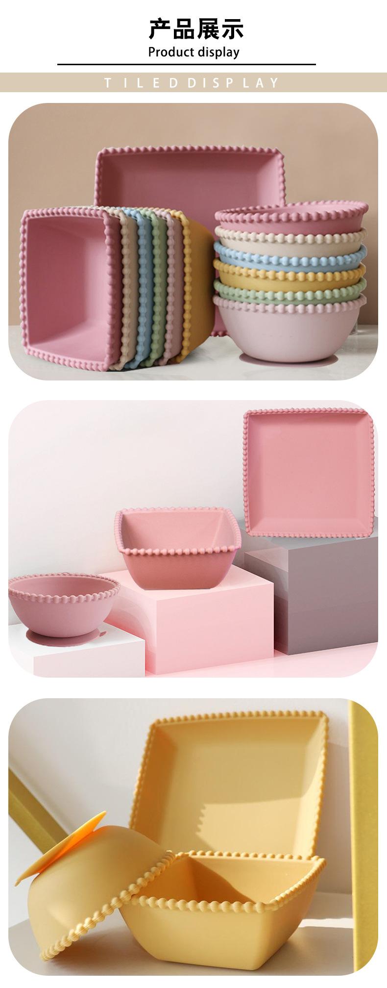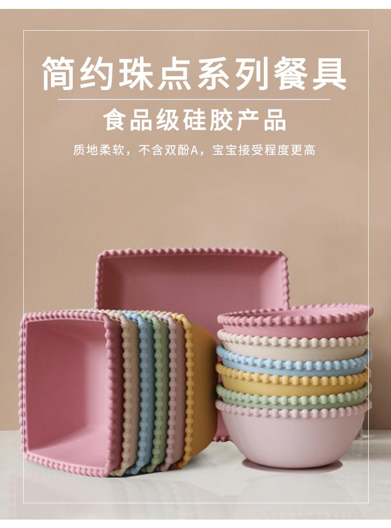 Vajilla de punto de cuentas de venta caliente de fábrica, tazón con ventosa resistente a caídas, tazón de silicona de grado alimenticio para suplemento alimenticio para bebés, tazón de entrenamiento para comer para bebés