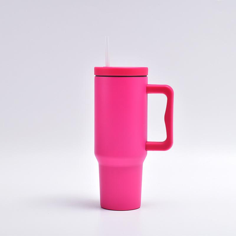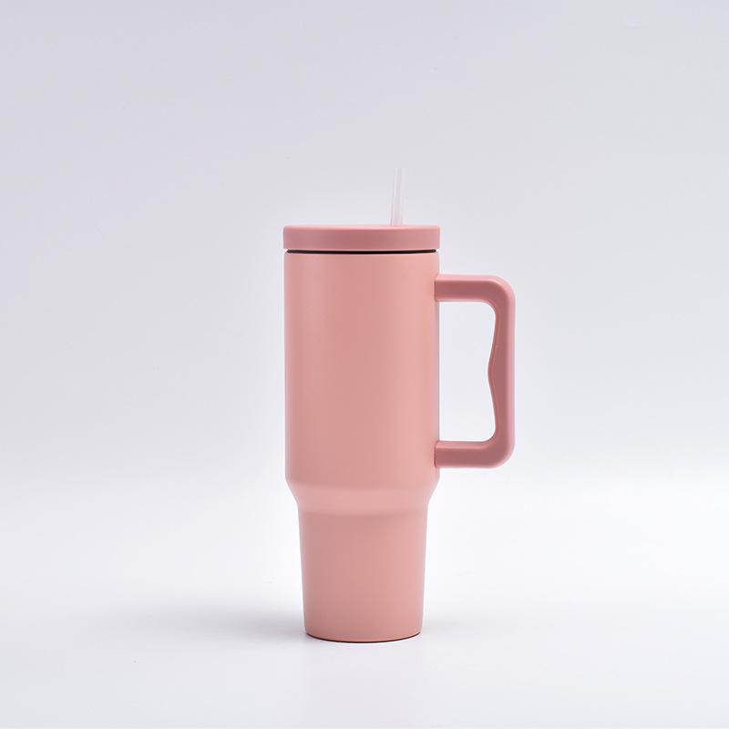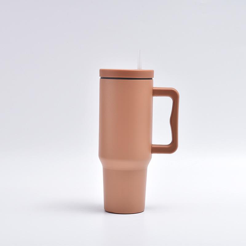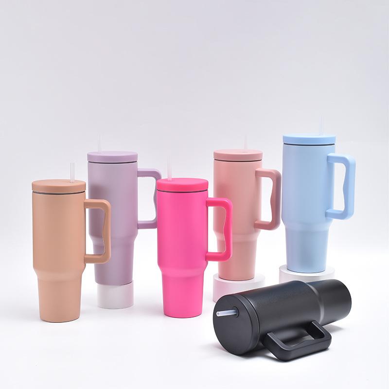 Vaso Térmico de Acero Inoxidable 304 Simple Personalizado de Gran Capacidad con Asa Vaso para Hielo Termo Montado en Coche con Pajita 40oz Vaso para Coche