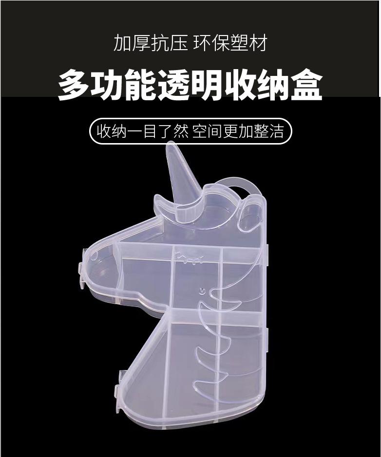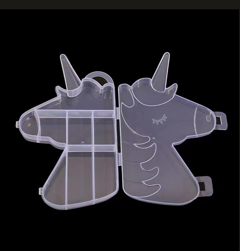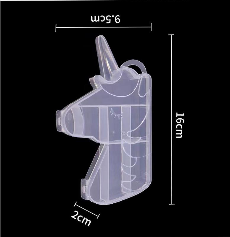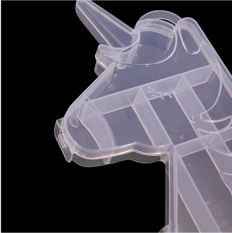 Caja de almacenamiento transparente con forma de dibujos animados, caja de plástico de unicornio, 8 cajas de plástico a cuadros, caja de joyería con tapa, caja de almacenamiento a prueba de polvo