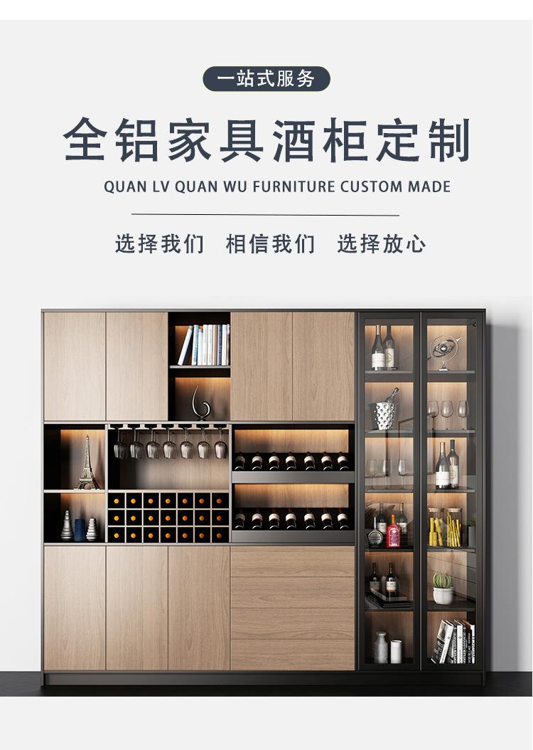 Vitrina de vino de aleación de aluminio con combinación de puertas de vidrio para restaurante, minimalista, de lujo y ligera, para comedor y personalización de muebles de aluminio de fábrica.