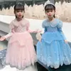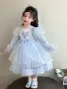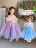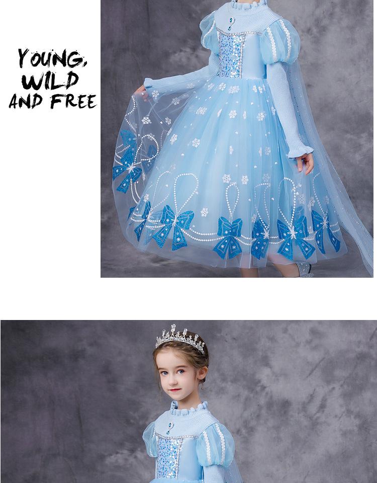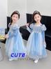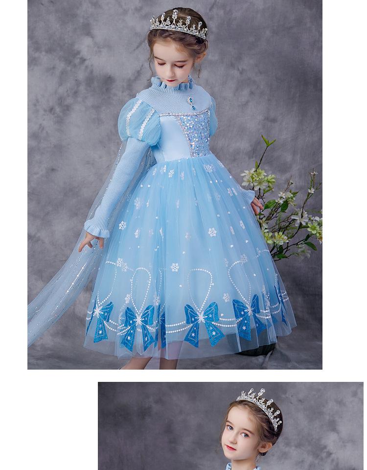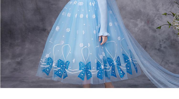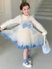 Vestido de Princesa Elsa Otoño/Invierno 2025 Suéter Vestido para Niñas Nuevo Estilo con Velo, Elegante Vestido de Malla, Estilo Pequeña Chanel