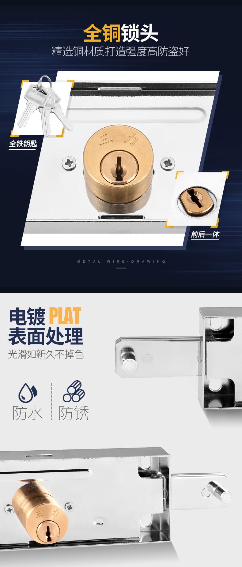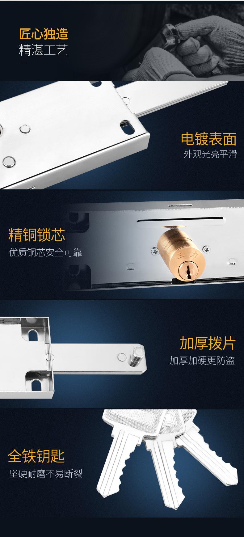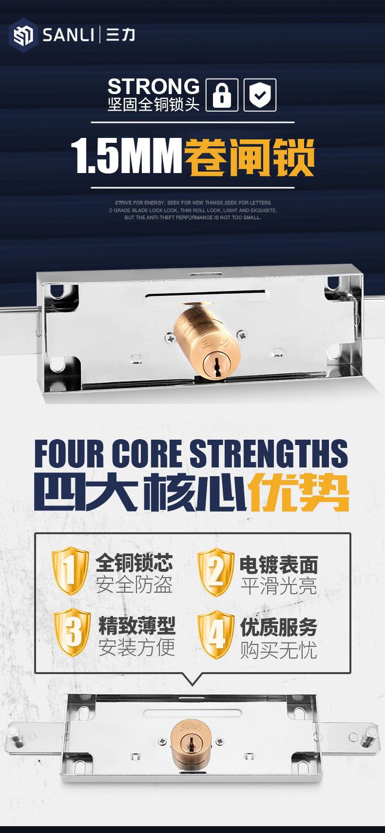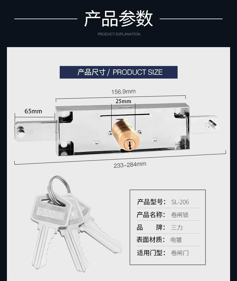 Este candado de persiana enrollable está configurado como: carcasa de 1.5 mm, superficie galvanizada en zinc blanco, cabeza de candado de cobre con 3 llaves de hierro. Especificaciones de embalaje: 1 pieza/bolsa/caja, 50 cajas/cartón