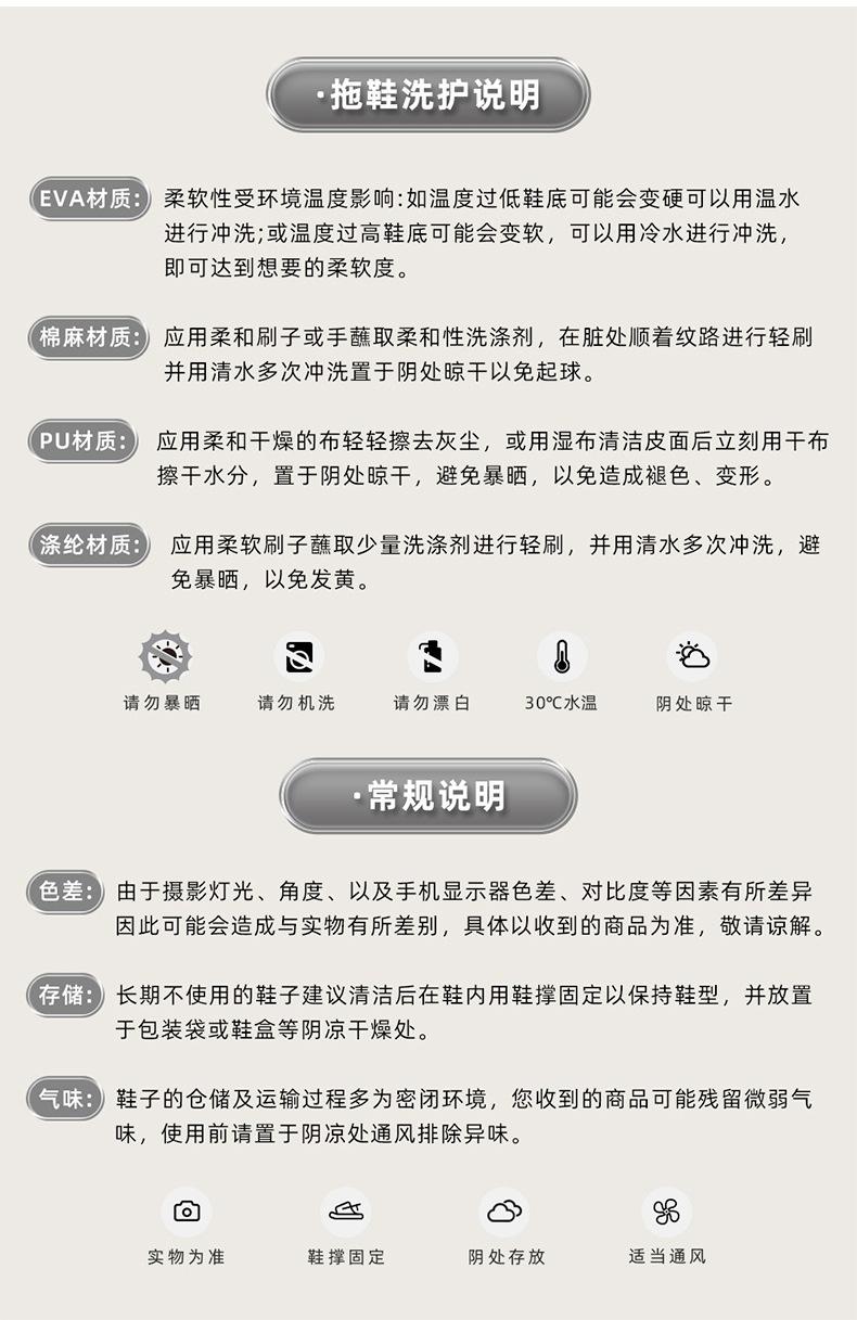 Consejos amables:Las zapatillas de EVA deben mantenerse alejadas de las altas temperaturas y de la exposición al sol, ya que la exposición prolongada a altas temperaturas hará que los zapatos se deformen.