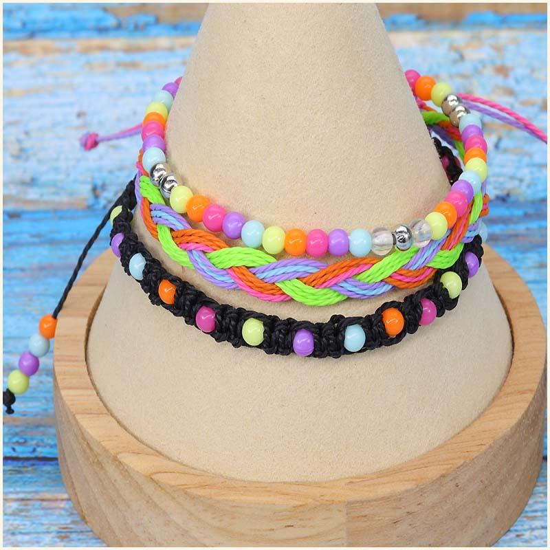 Compra Pulsera Transfronteriza Nueva para Adolescentes con Cuentas Coloridas Amazon Más Vendida Impermeable Tejida con Cera Set de Tres Piezas al por mayor en Joom.pro