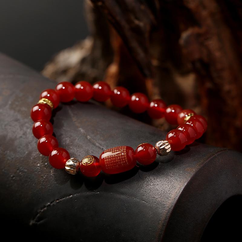 Pulsera de Cuentas de Barril de Ágata Roja A2