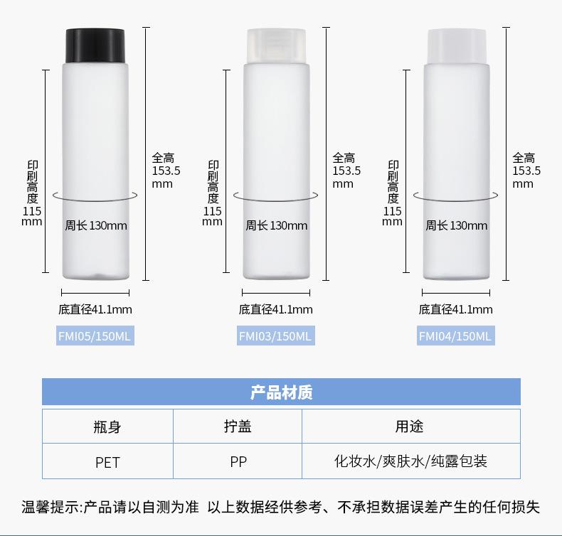 Compra Botella de agua de maquillaje al por mayor de fábrica, botella de tóner de 150 ml, con hombro plano esmerilado, plástico puro, subenvasado de rocío, botella vacía en stock al por mayor en Joom.pro